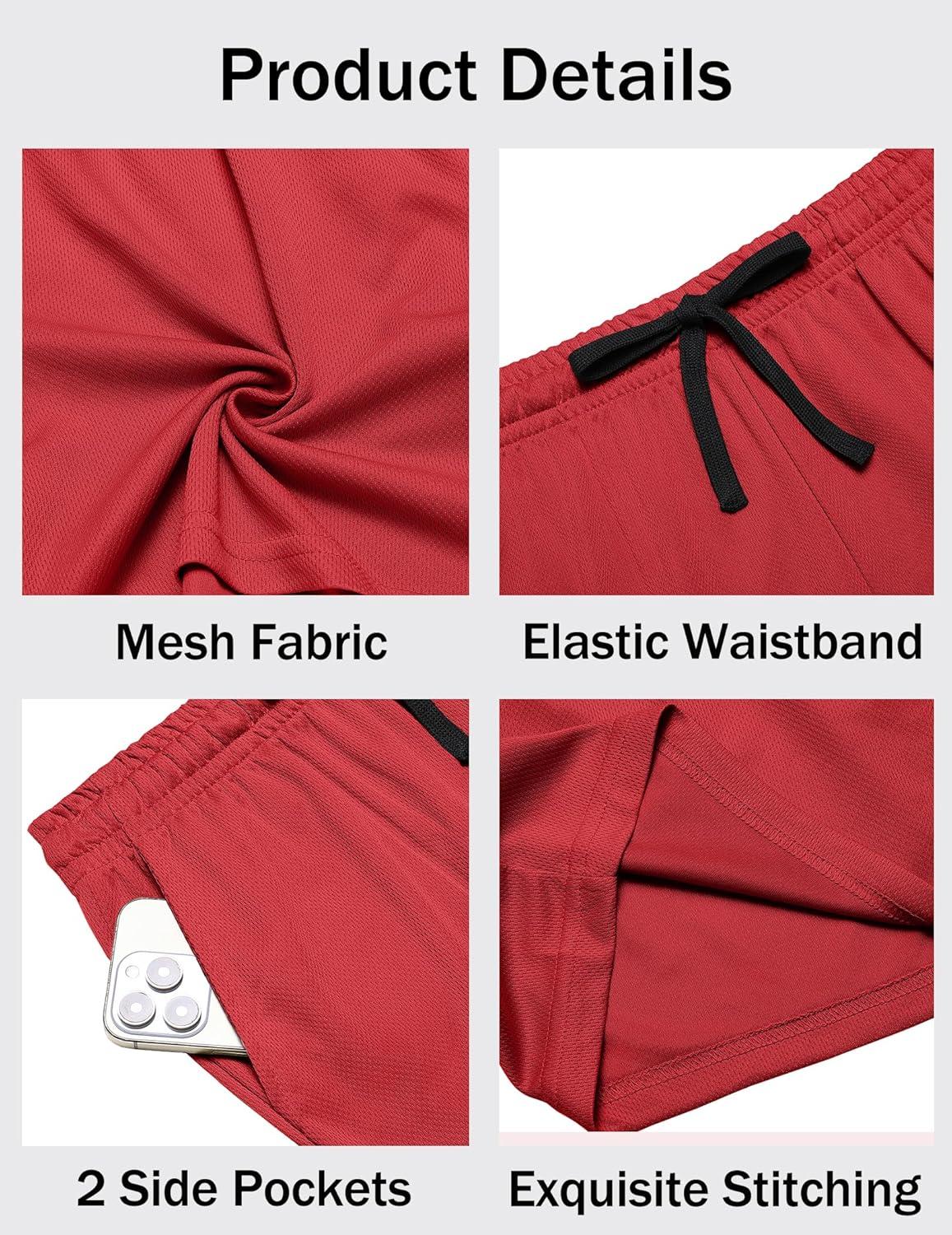 COOFANDY Men's Gym Shorts 3 Pack Mesh Athletic Workout Shorts Lightweight Quick Dry Drawstring Shorts with Pockets(Black/Grey/Red)