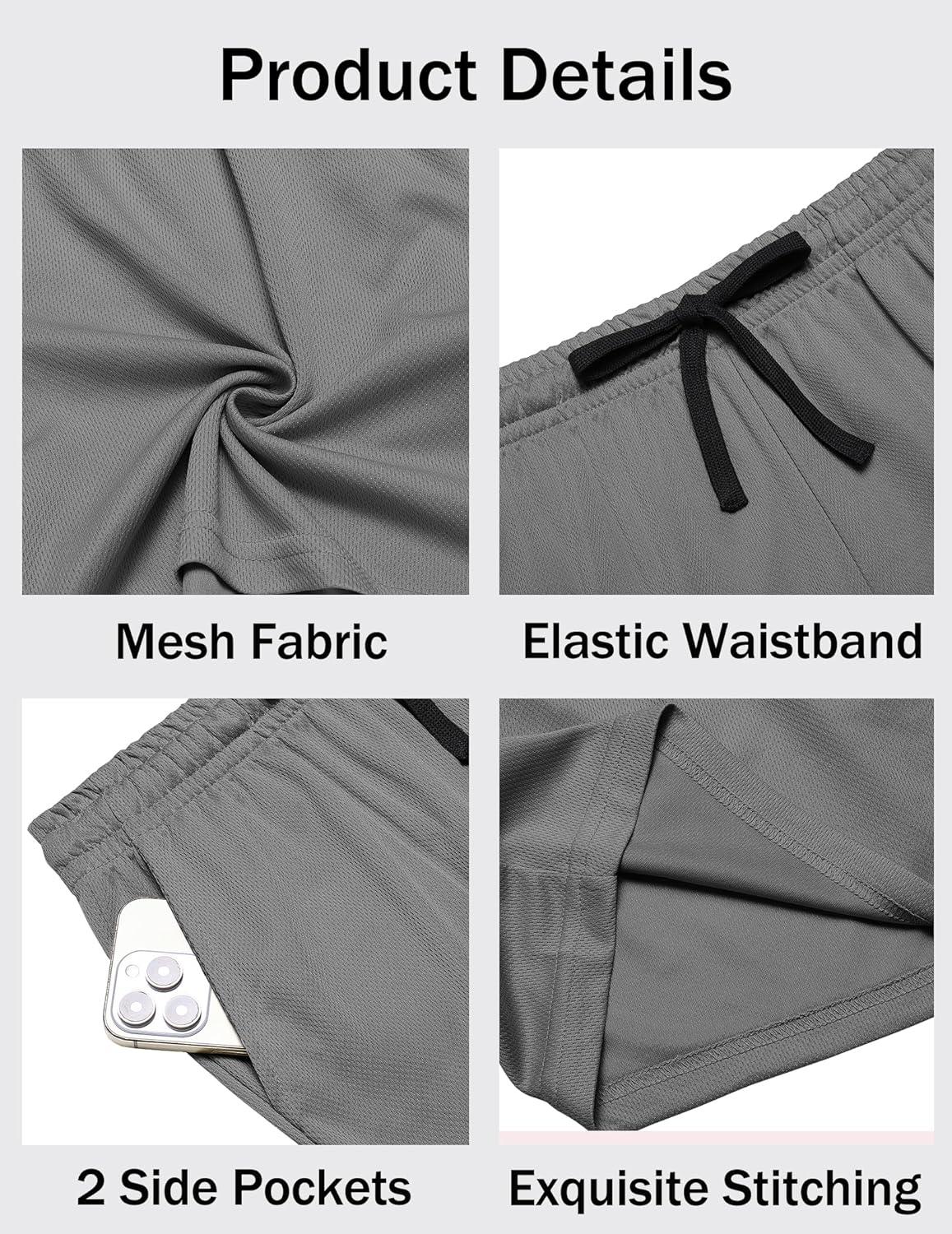 COOFANDY Men’s Gym Shorts 3 Pack Mesh Athletic Workout Shorts Lightweight Quick Dry Drawstring Shorts with Pockets(Black/Grey/Red)