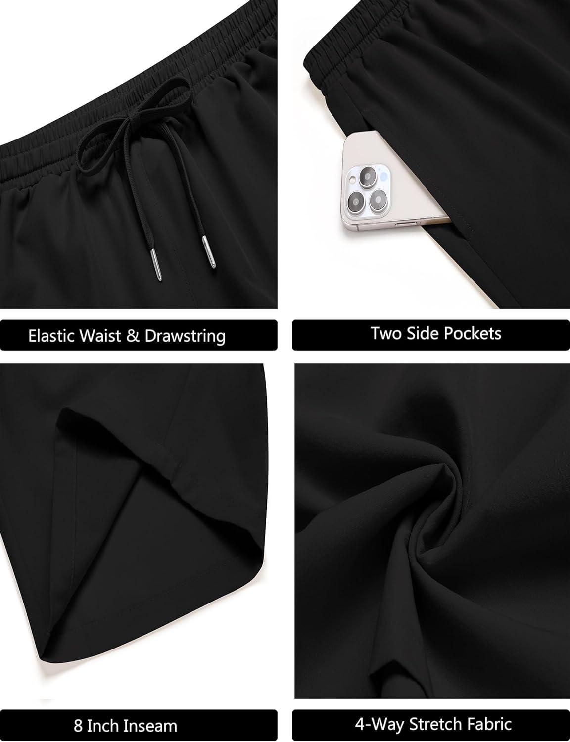 COOFANDY Men's Gym Workout Shorts 8 Inch Quick Dry Athletic Shorts Lightweight Drawstring Running Shorts(Black)