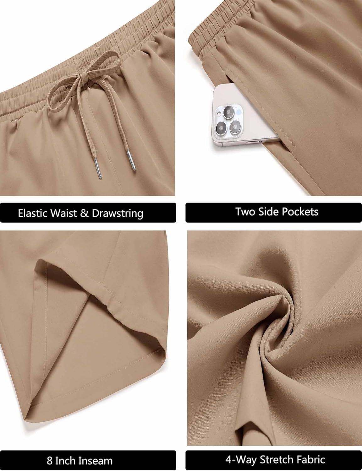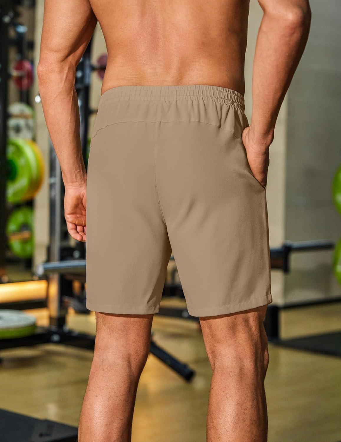 COOFANDY Men’s Gym Workout Shorts 8 Inch Quick Dry Athletic Shorts Lightweight Drawstring Running Shorts(Khaki)