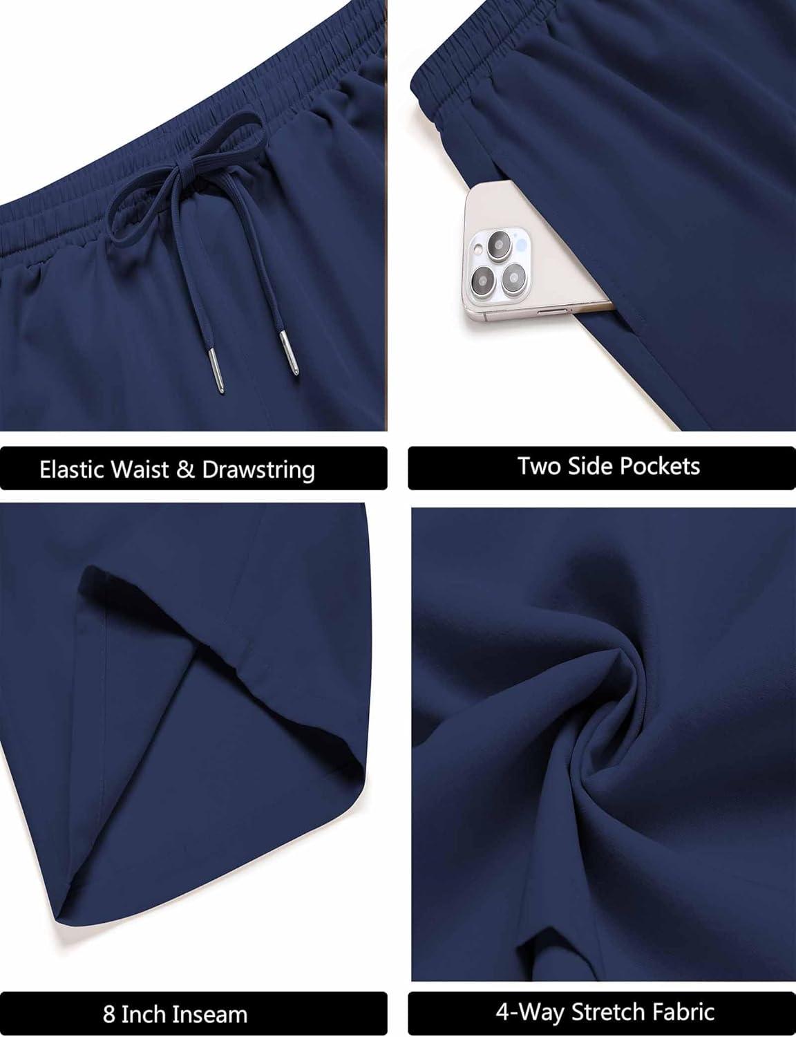 COOFANDY Men’s Gym Workout Shorts 8 Inch Quick Dry Athletic Shorts Lightweight Drawstring Running Shorts(Navy Blue)