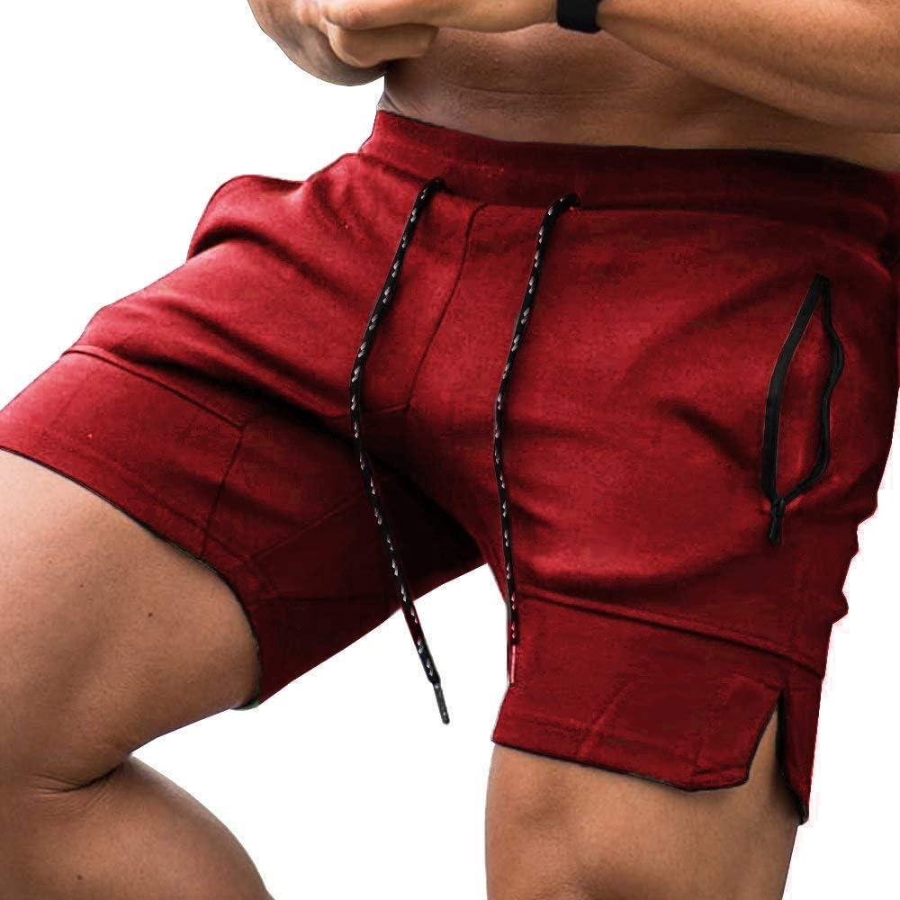 COOFANDY Men's Gym Workout Shorts Athletic Training Shorts Fitted Weightlifting Bodybuilding Shorts with Zipper Pockets(Red)