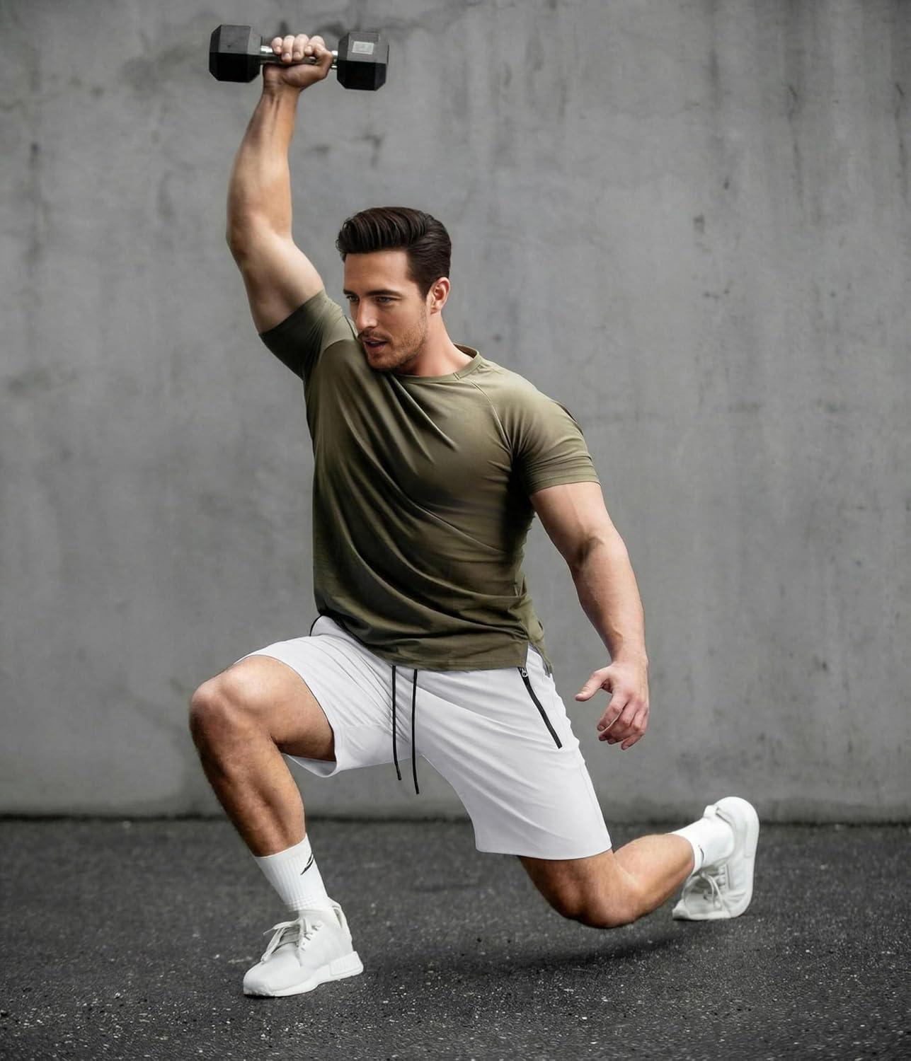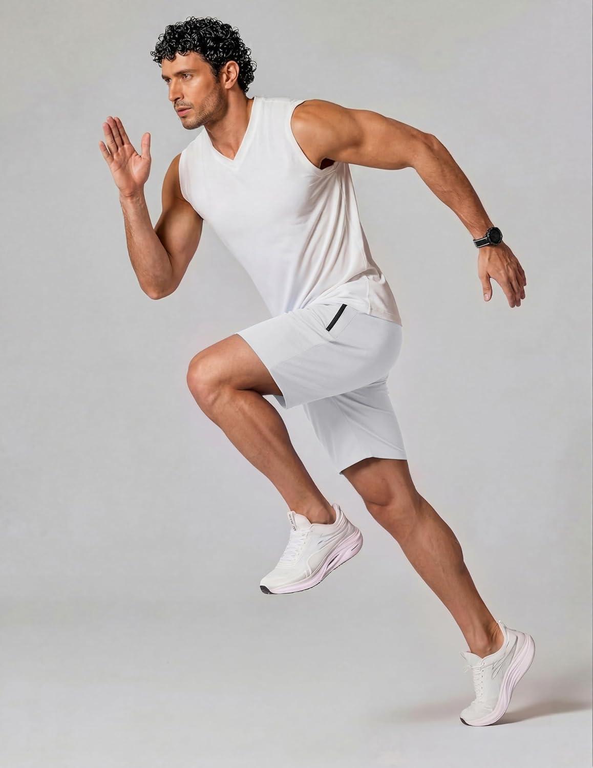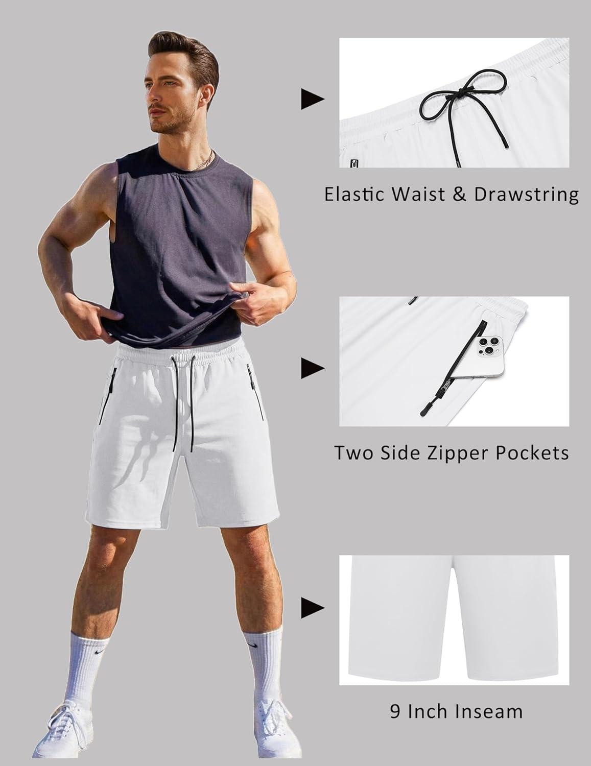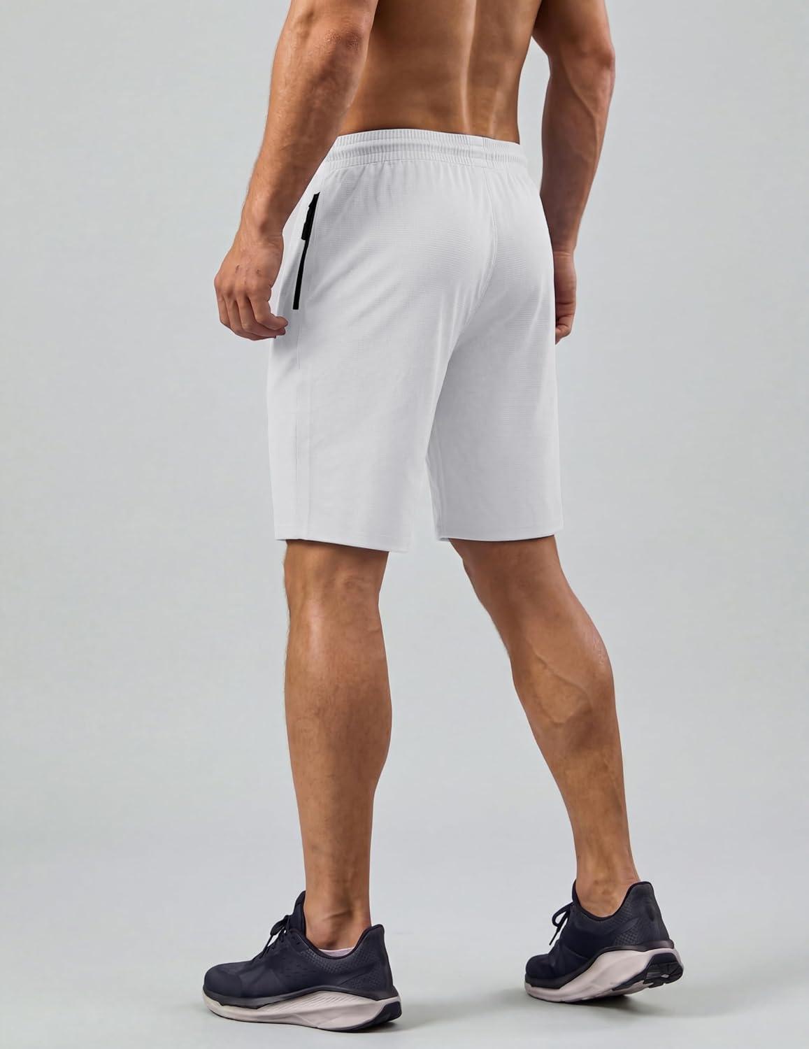 COOFANDY Men’s Gym Workout Shorts Quick Dry Athletic Loose-Fit Lightweight Running Shorts with Zipper Pockets(White)