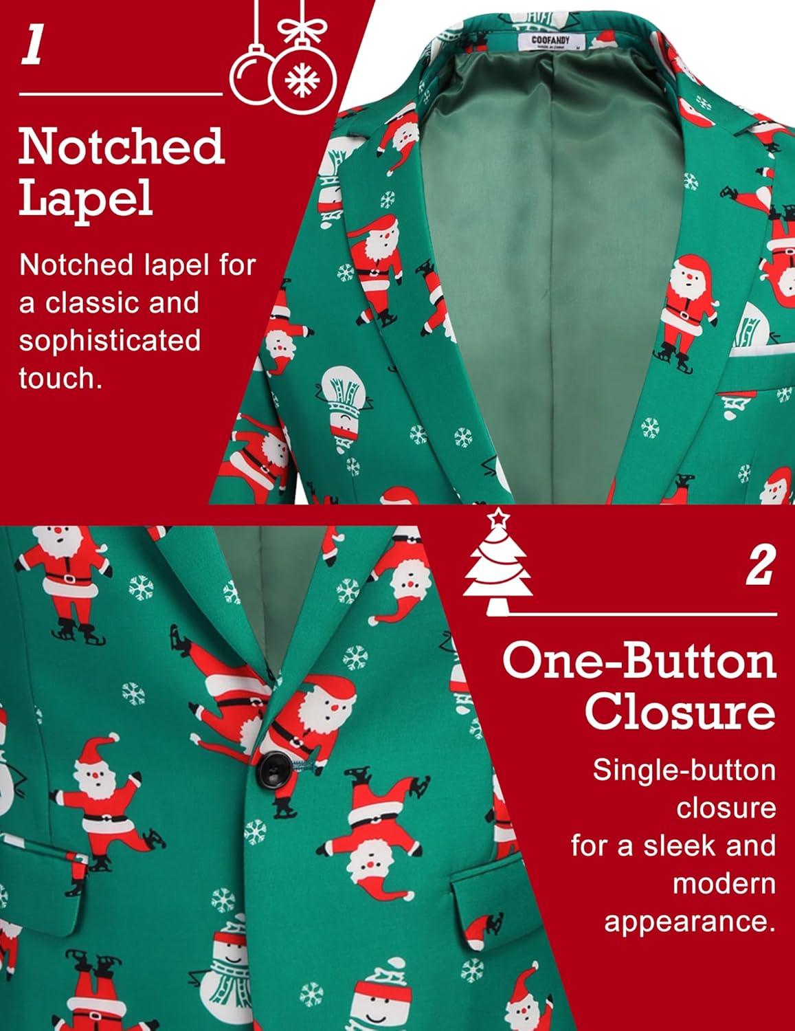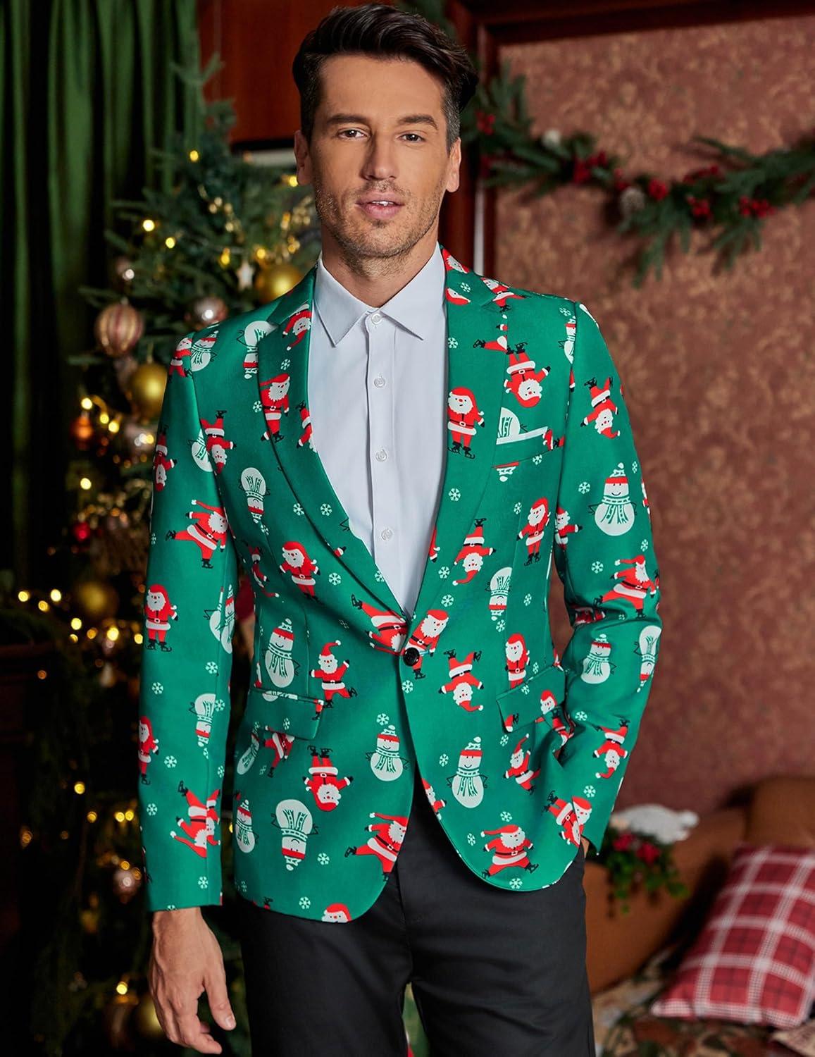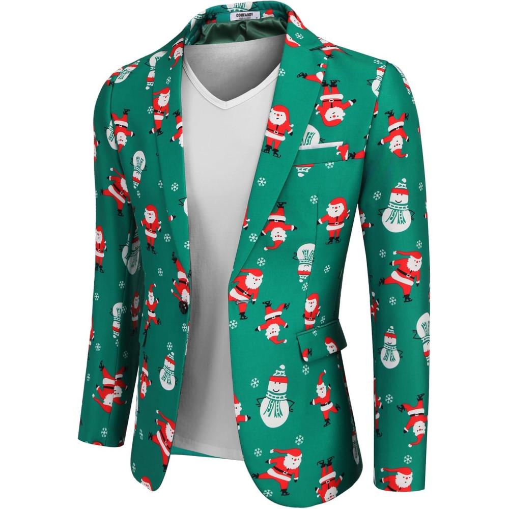 imageCOOFANDY Mens Halloween Blazer Jacket One Button Christmas Sport Coat Halloween Party Holiday JacketChristmas Blazer  Skating Santa Claus