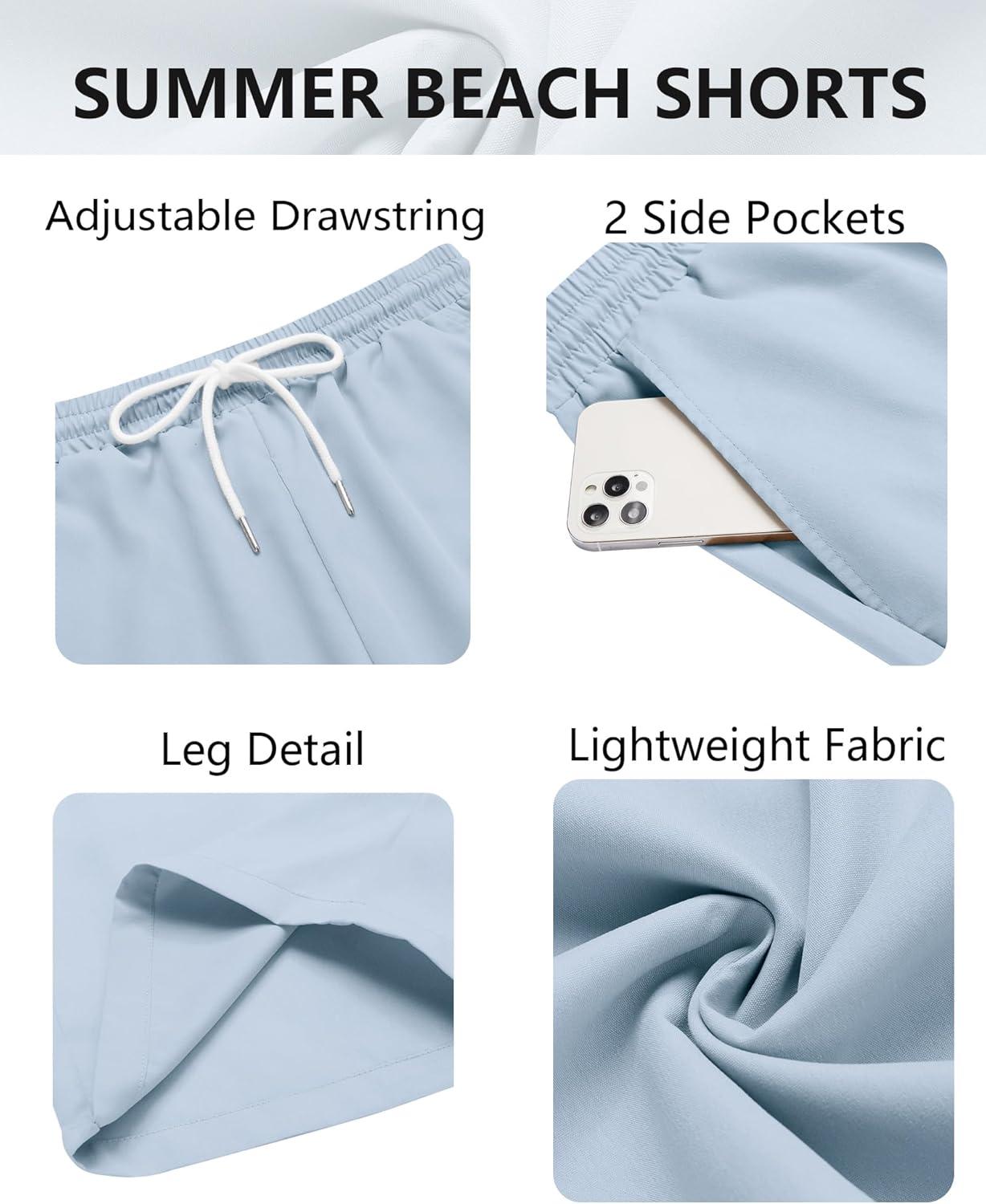 COOFANDY Men’s Hawaiian Beach Shorts Elastic Waist Drawstring Lightweight Summer Casual Shorts with Pocket(Light Blue)