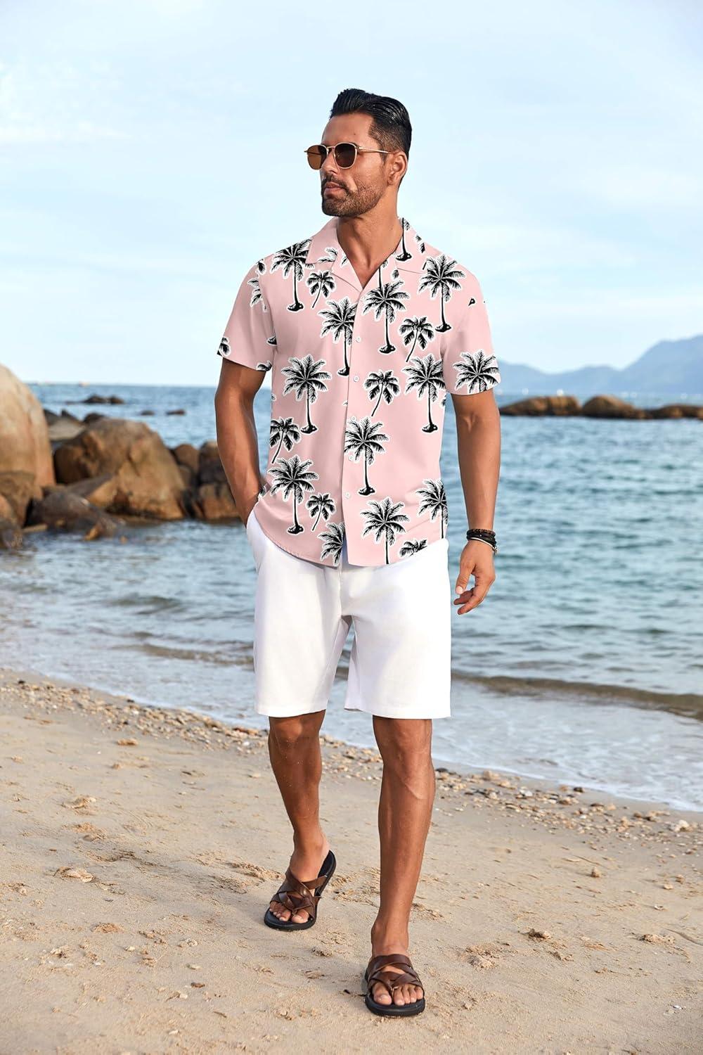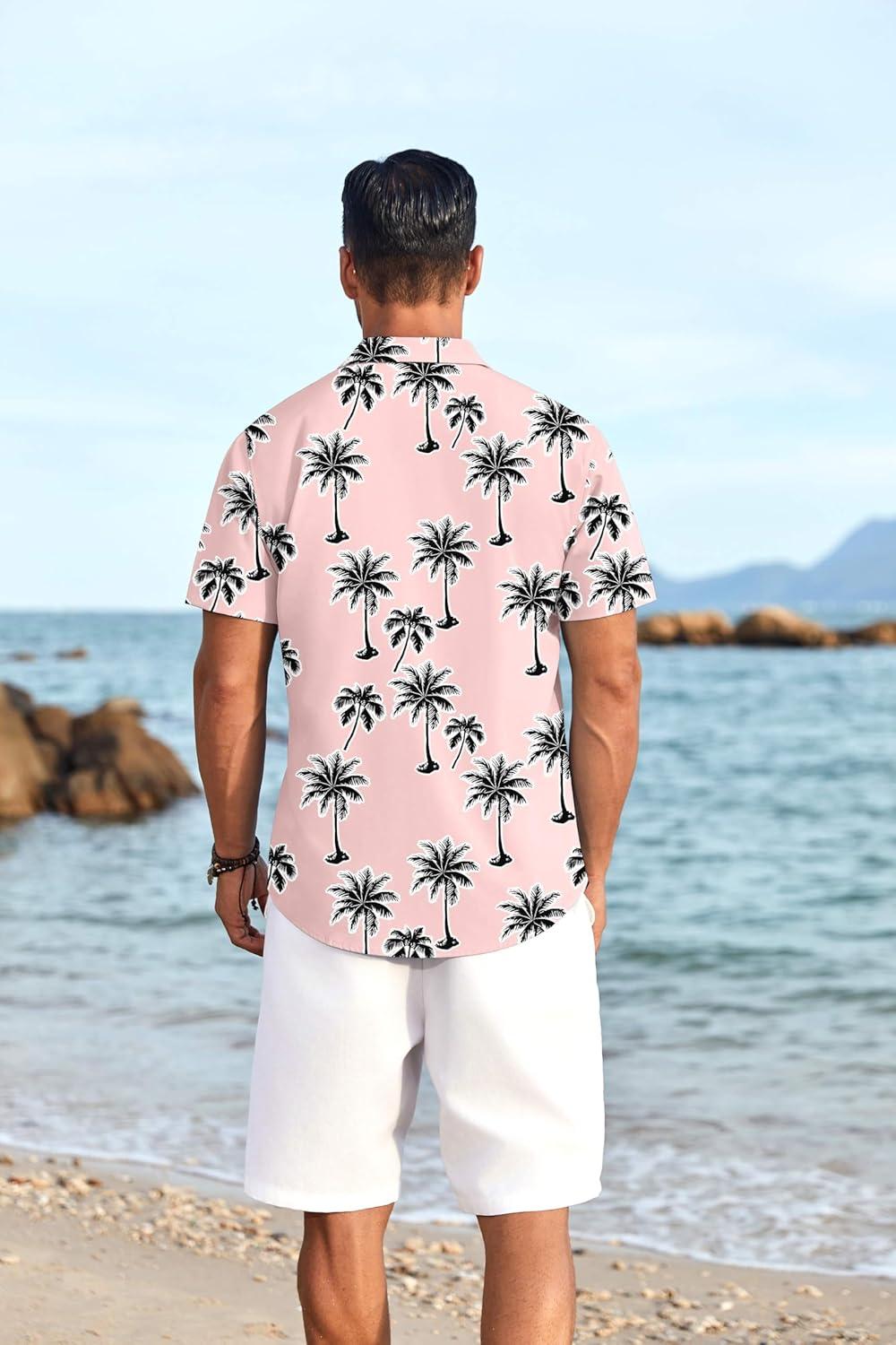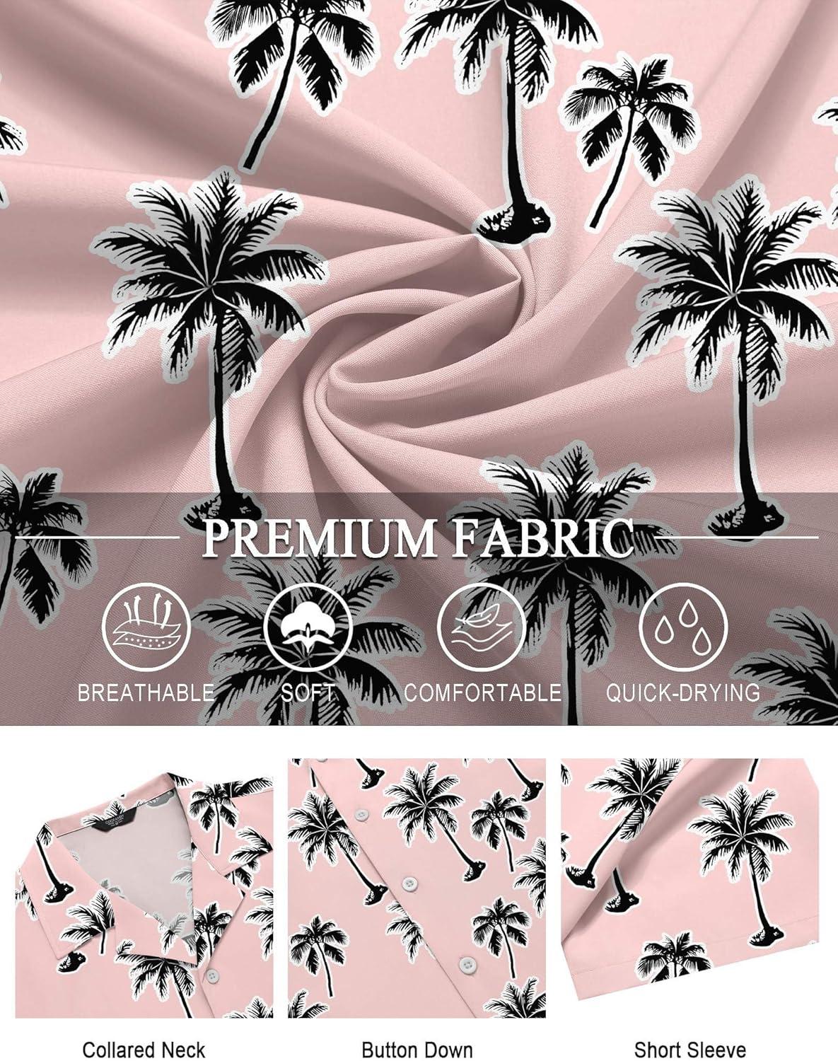COOFANDY Men's Hawaiian Floral Shirts Short Sleeve Button Down Shirts Tropical Summer Beach Shirts(Coconut Tree-pink)