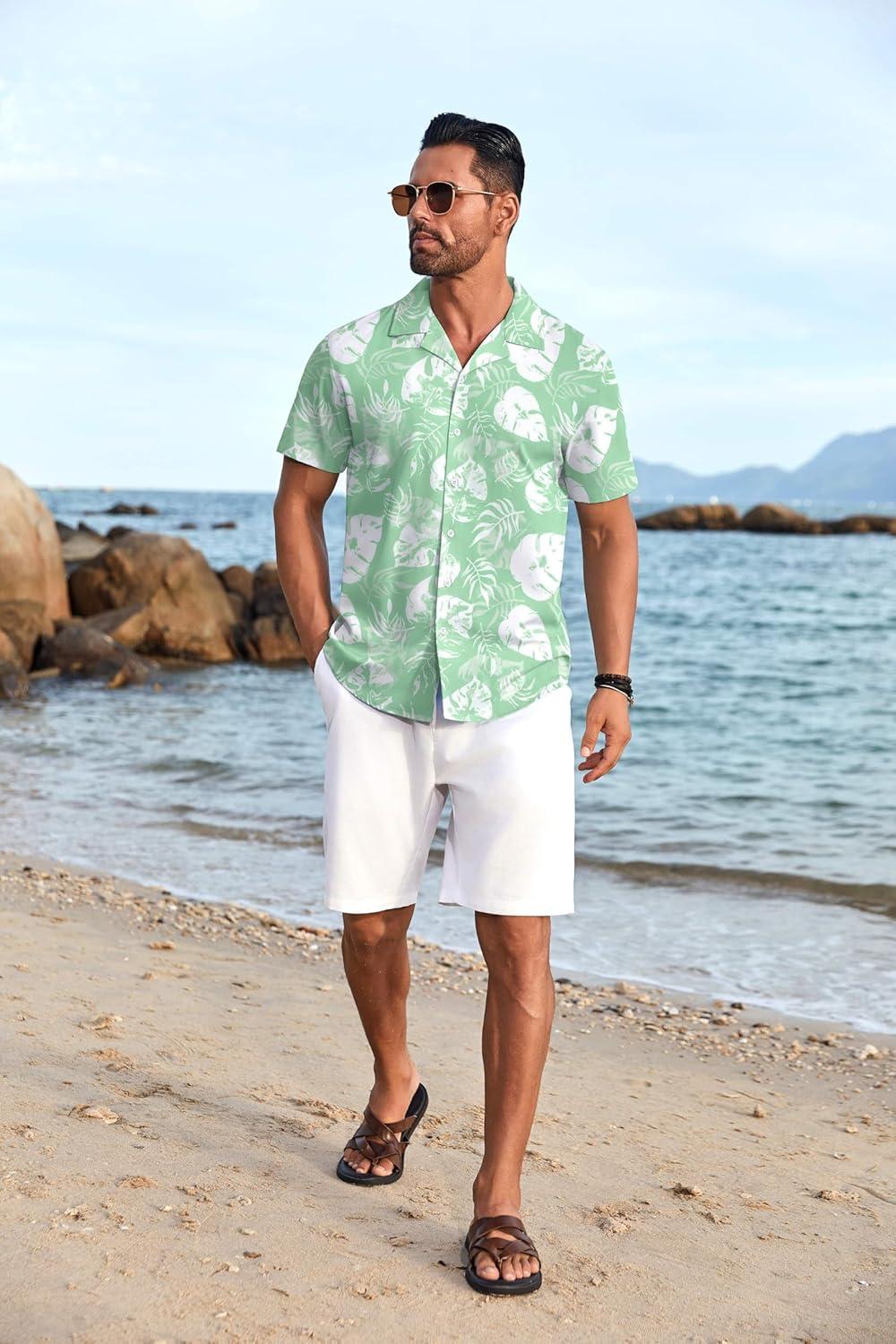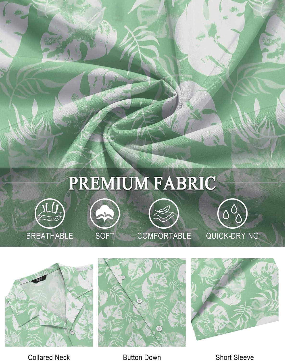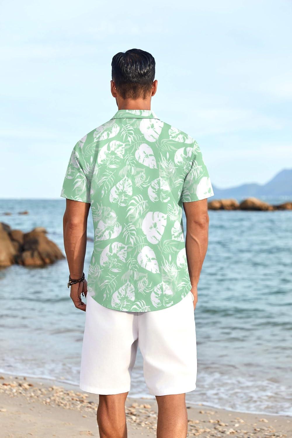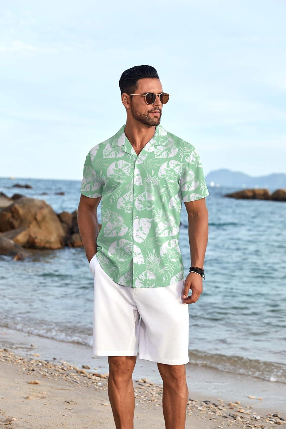 COOFANDY Men's Hawaiian Floral Shirts Short Sleeve Button Down Shirts Tropical Summer Beach Shirts(Monstera Leaf-green)