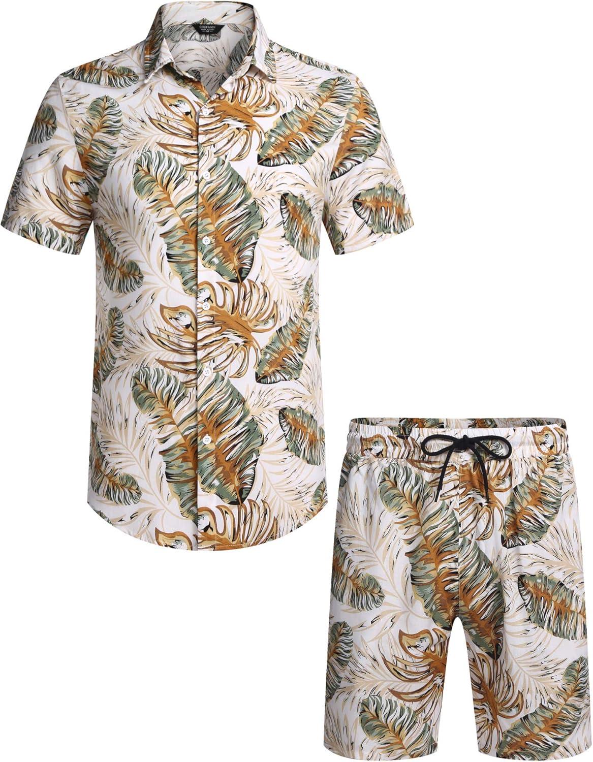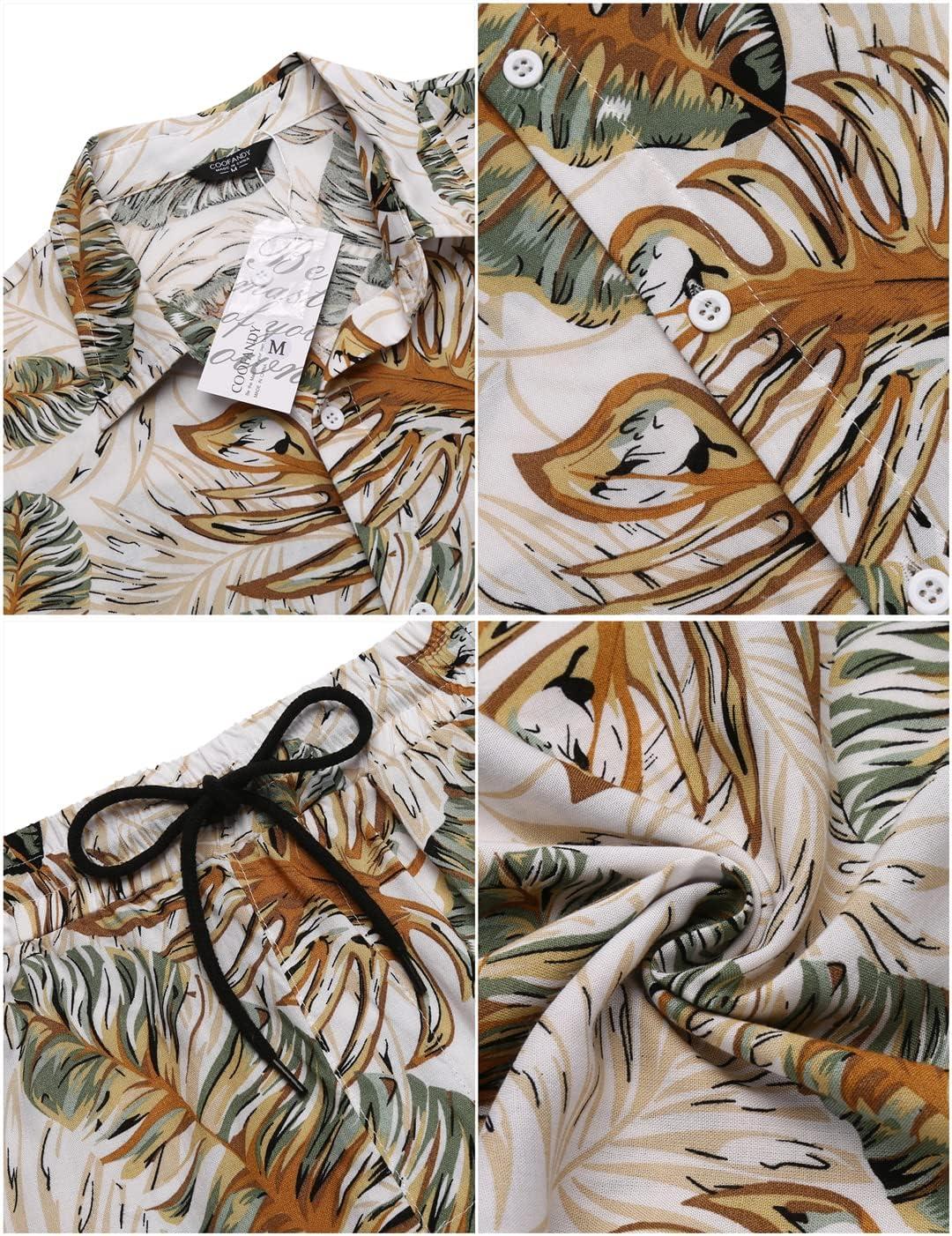 COOFANDY Men’s Hawaiian Matching Set Summer Beach 2 Piece Outfits Flower Button Down Shirts and Shorts Vacation Outfits(Coconut Tree)