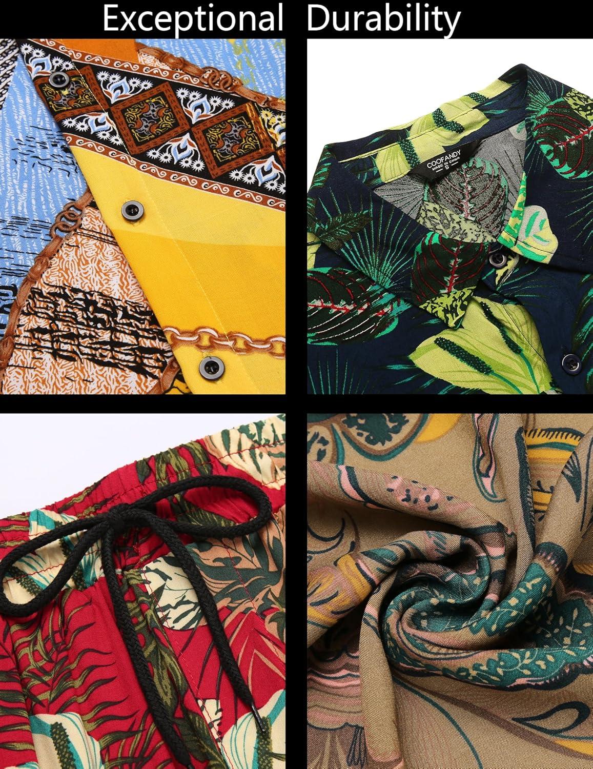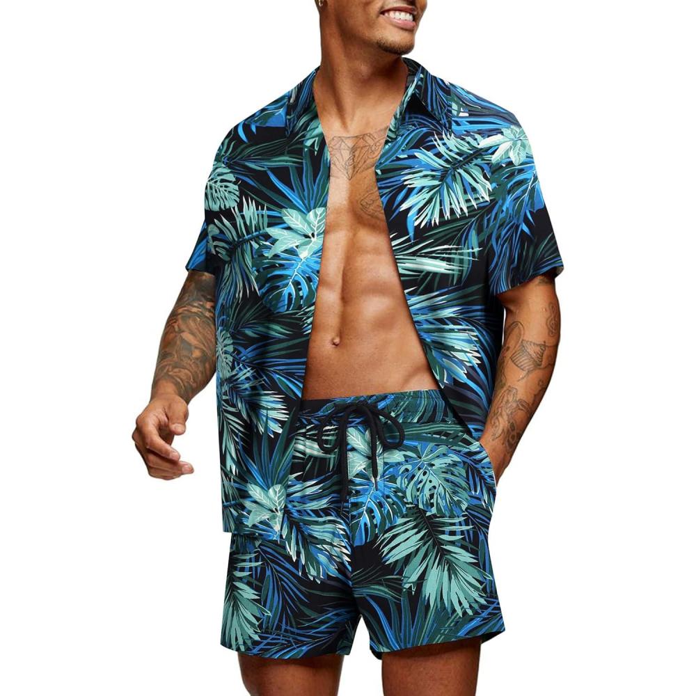 COOFANDY Men's Hawaiian Matching Set Summer Beach 2 Piece Outfits Flower Button Down Shirts and Shorts Vacation Outfits(Blue & Green)