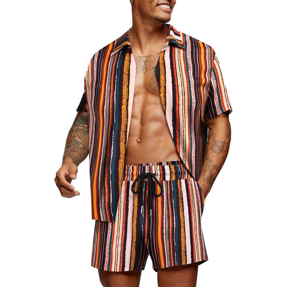 imageCOOFANDY Mens Hawaiian Matching Set Summer Beach 2 Piece Outfits Flower Button Down Shirts and Shorts Vacation OutfitsMulticolor Stripes