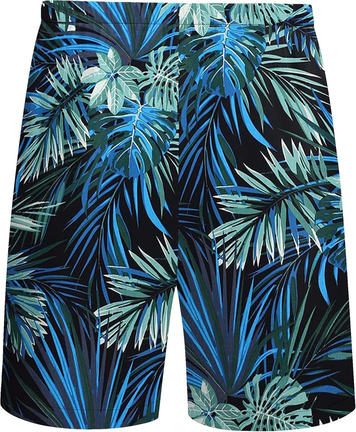 COOFANDY Men's Hawaiian Matching Shirt and Shorts Set Summer Beach 2 Piece Outfits Short Sleeve Cuban Shirts and Shorts(Leaves-blue)