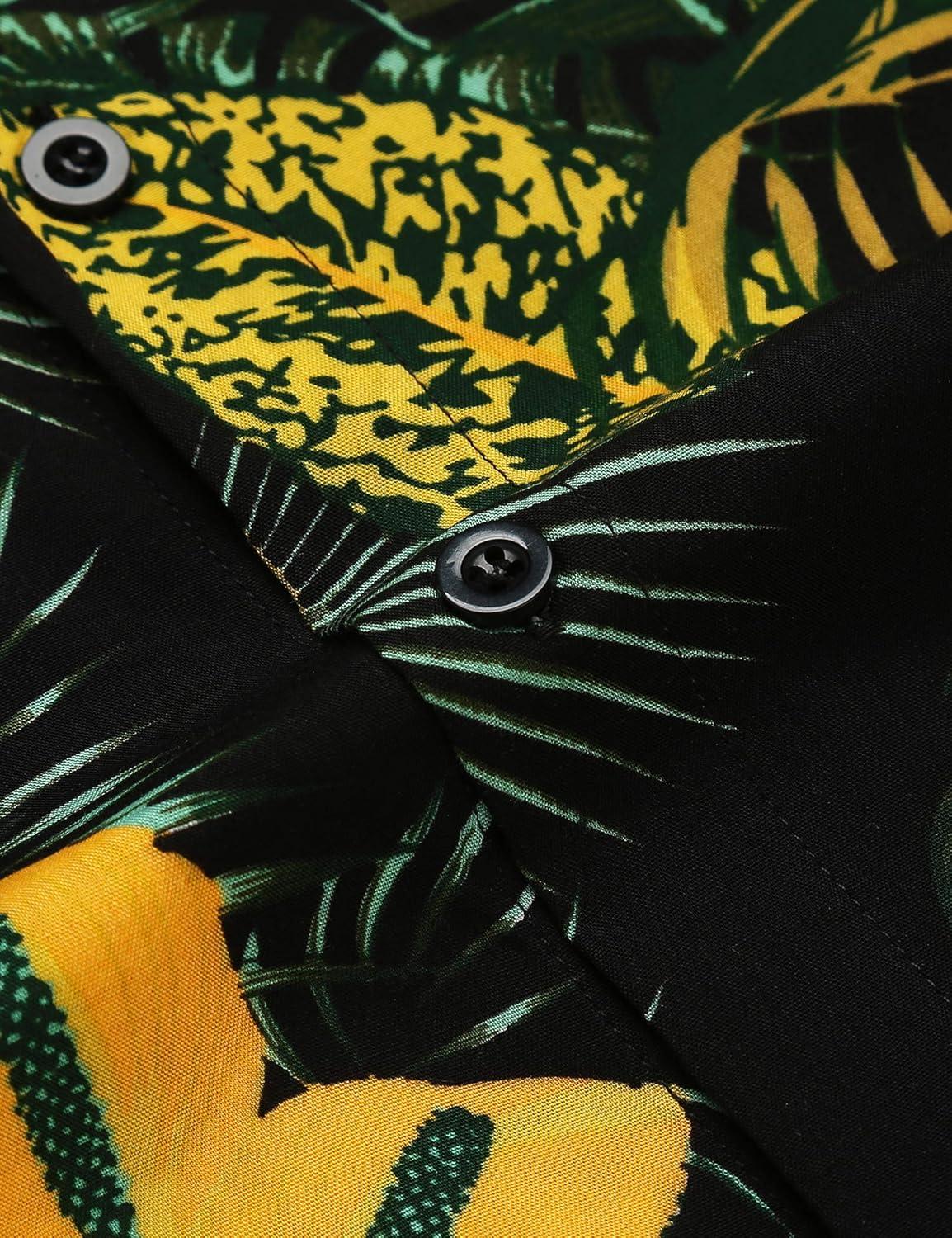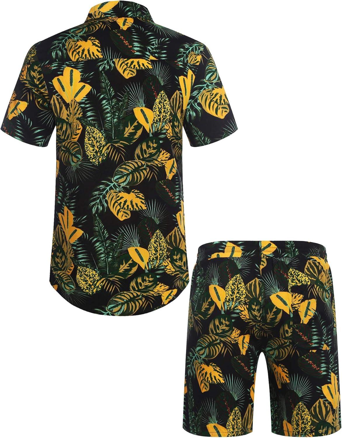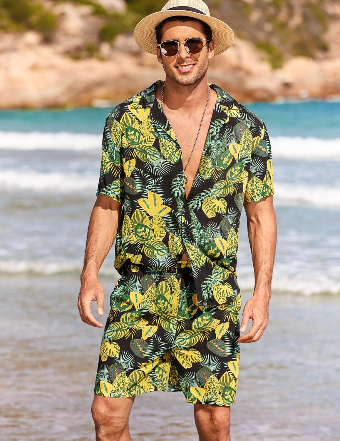 COOFANDY Men's Hawaiian Matching Shirt and Shorts Set Summer Beach 2 Piece Outfits Short Sleeve Cuban Shirts and Shorts(Rainforest-yellow)