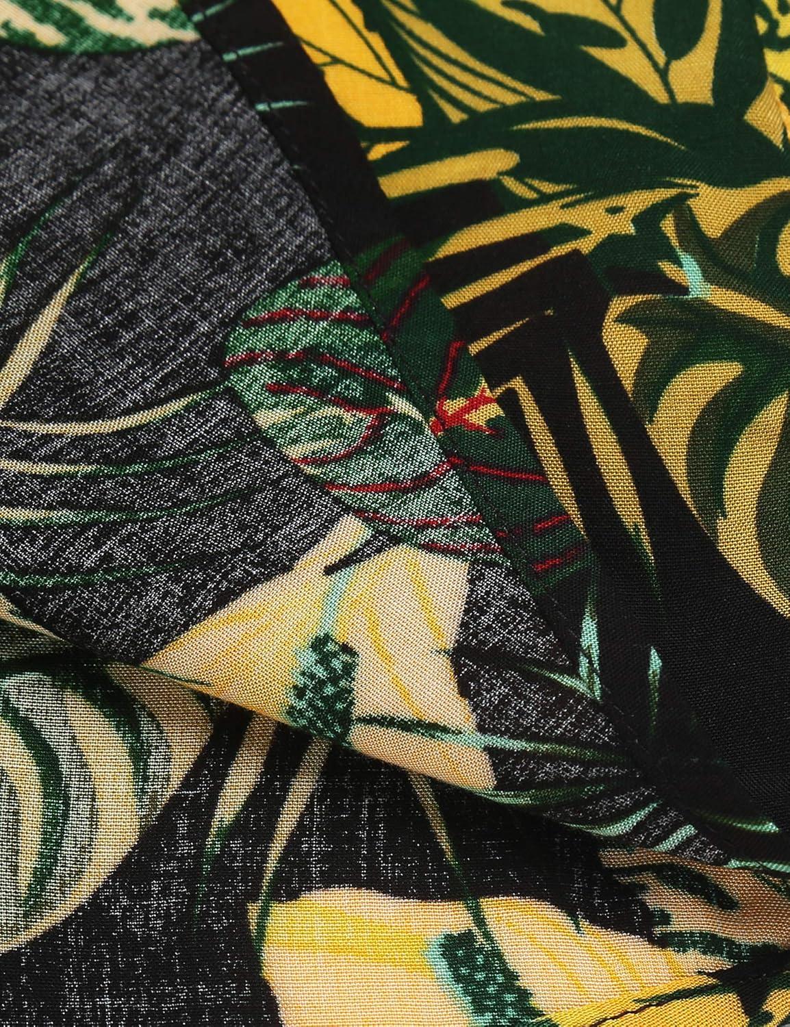 COOFANDY Men’s Hawaiian Matching Shirt and Shorts Set Summer Beach 2 Piece Outfits Short Sleeve Cuban Shirts and Shorts(Rainforest-yellow)