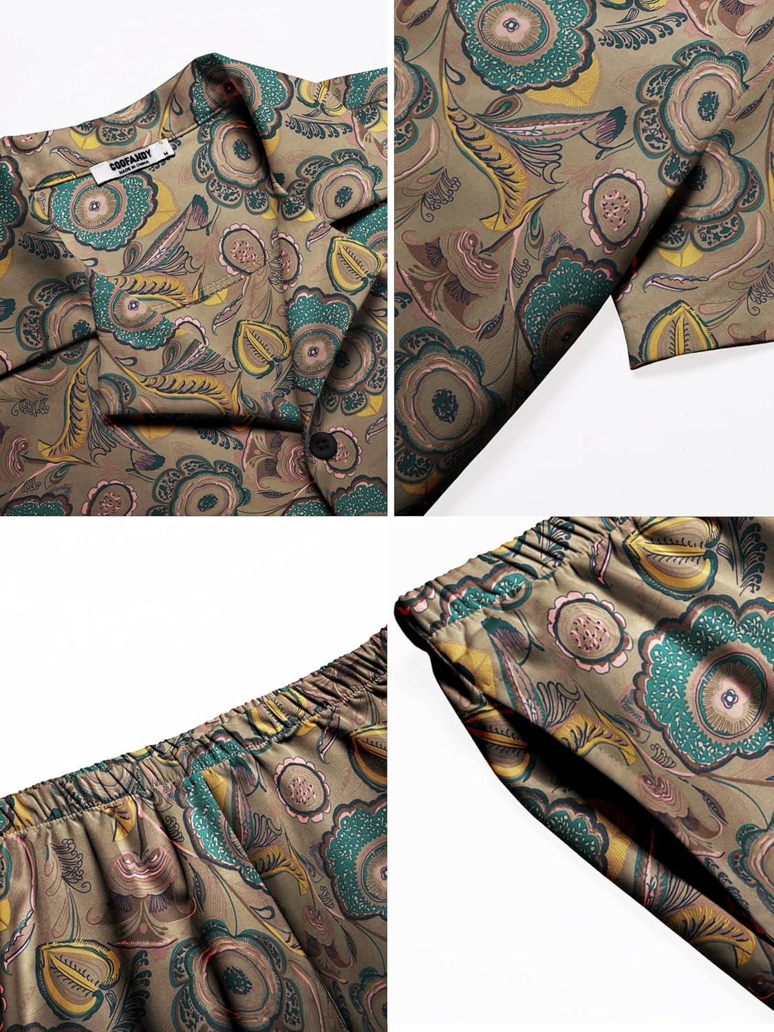 imageCOOFANDY Mens Hawaiian Matching Shirt and Shorts Set Summer Beach 2 Piece Outfits Short Sleeve Cuban Shirts and ShortsRetro Brown