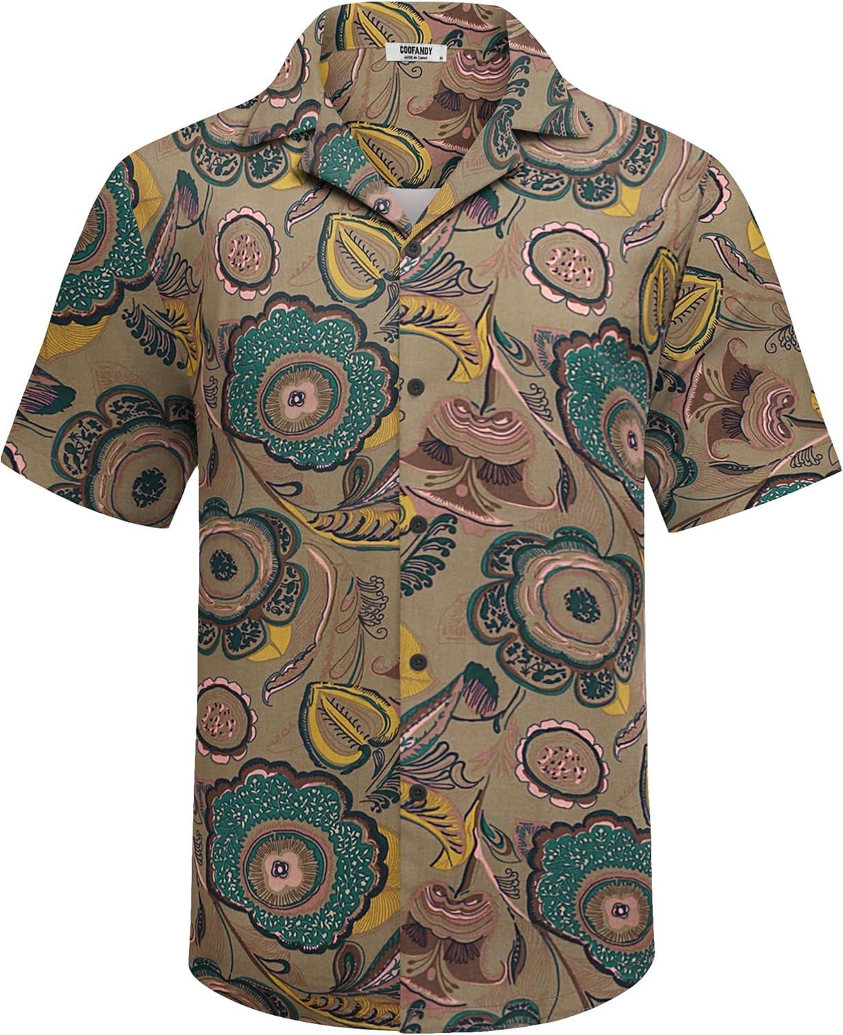 COOFANDY Men's Hawaiian Matching Shirt and Shorts Set Summer Beach 2 Piece Outfits Short Sleeve Cuban Shirts and Shorts(Retro Brown)
