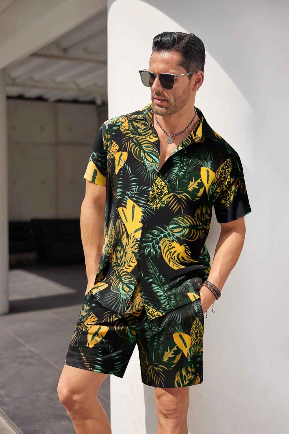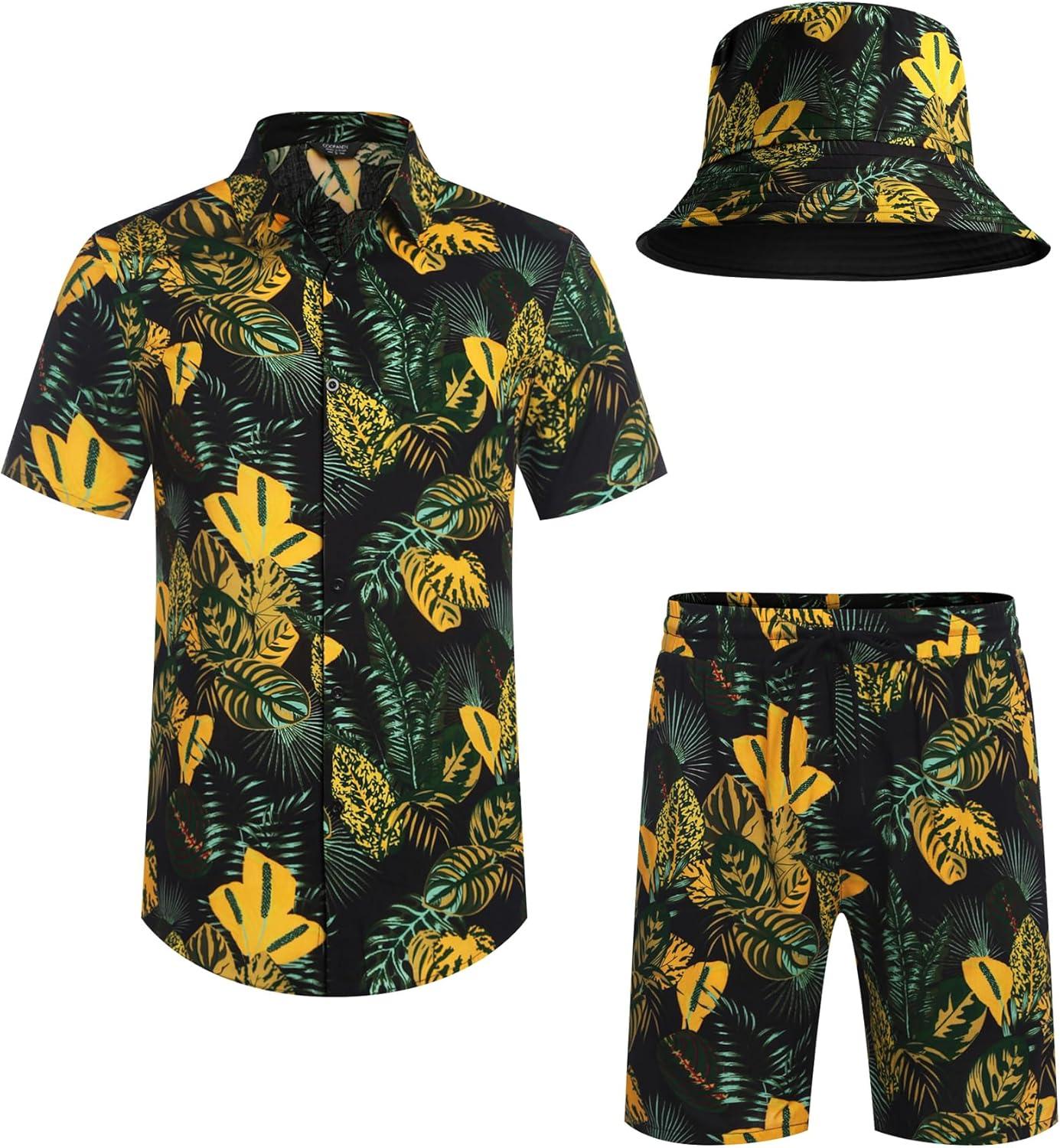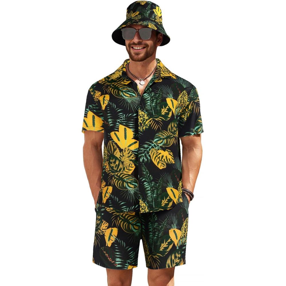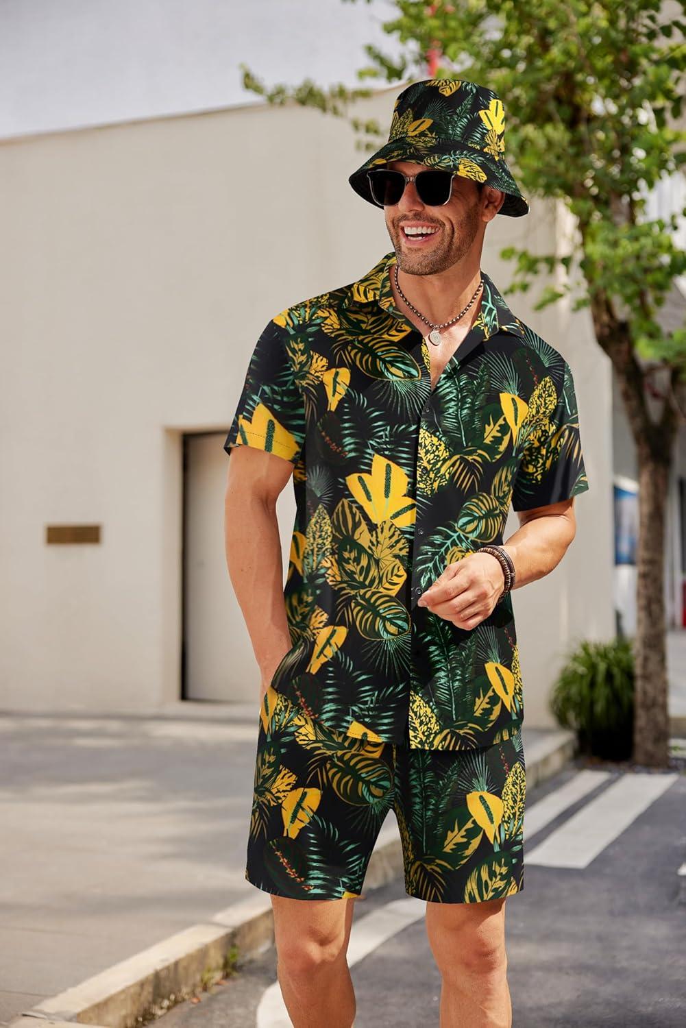 COOFANDY Matching Shirt and Shorts Set Beach Outfits with Bucket Hats. The casual looking of the fashion design complements the comfortable feeling, perfectly show your clean and handsome looking. If you ask us, the long days of summer offer up some of the best opportunities to show off your best looks, and the answer is: Coofandy 2023 Men's Hawaiian set! It’s the perfect casual poolside and beach look.