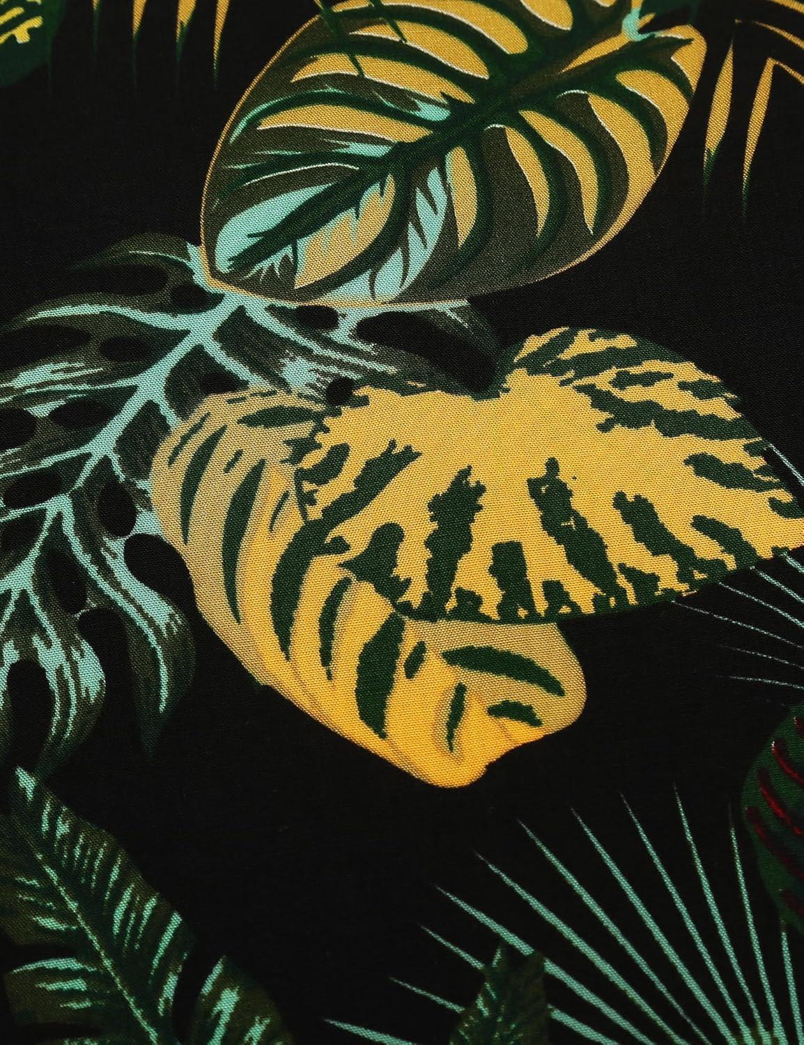 COOFANDY Men’s Hawaiian Shirt and Short Set Flower 2-pieces Beach Outfit with Bucket Hats(Black Yellow Leaves)