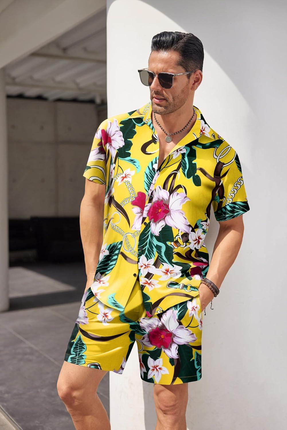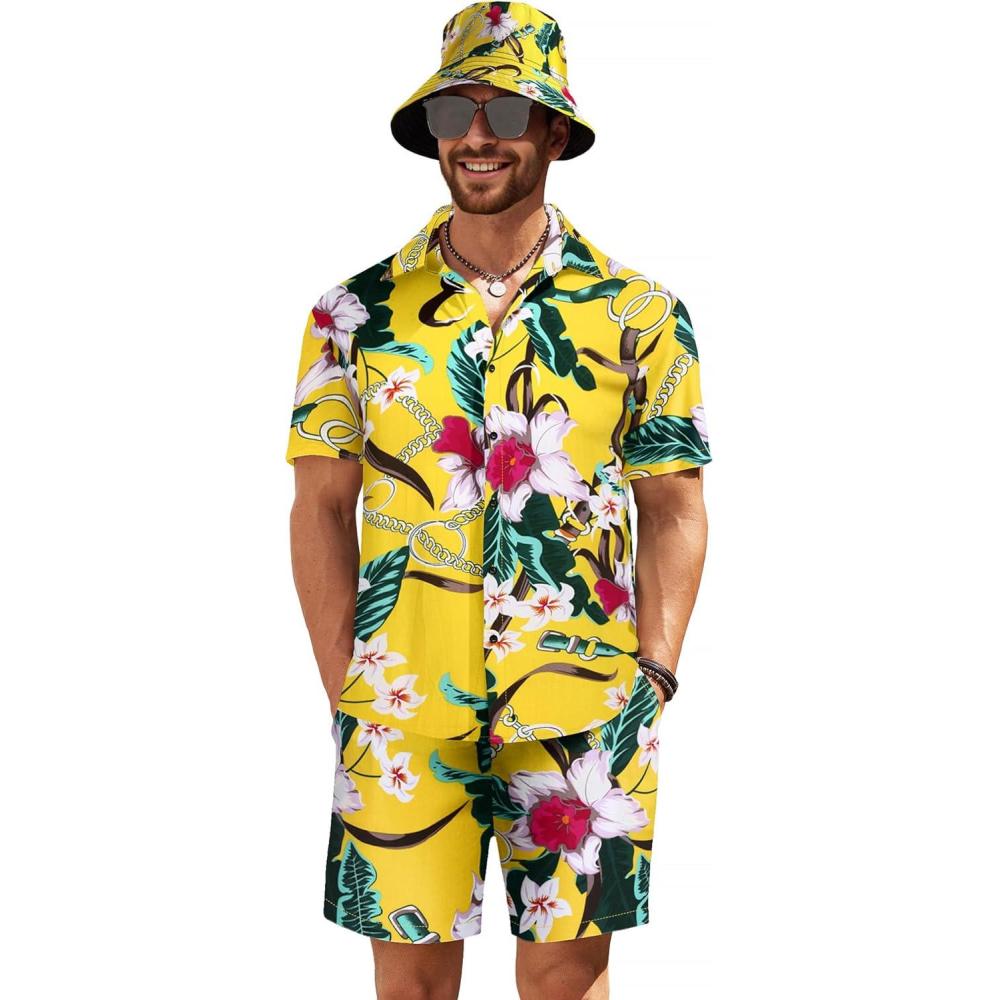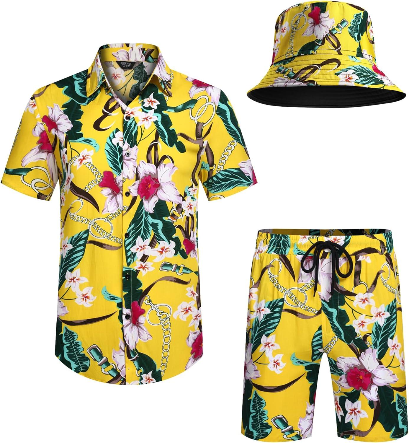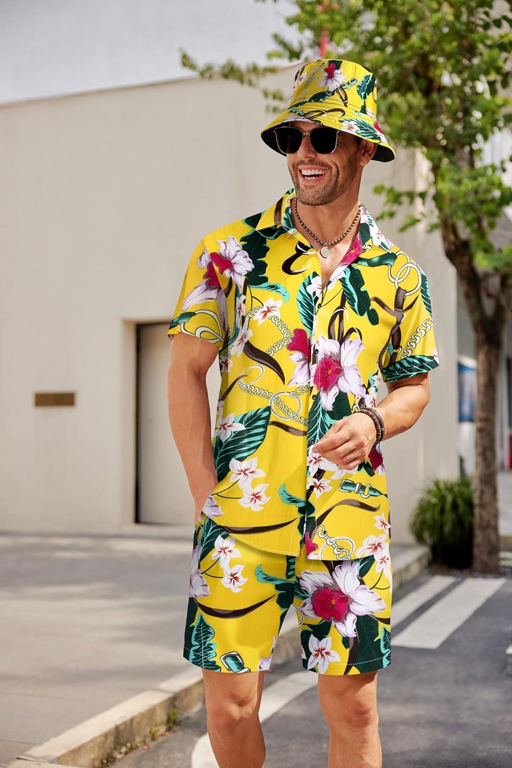 COOFANDY Matching Shirt and Shorts Set Beach Outfits with Bucket Hats. The casual looking of the fashion design complements the comfortable feeling, perfectly show your clean and handsome looking. If you ask us, the long days of summer offer up some of the best opportunities to show off your best looks, and the answer is: Coofandy 2023 Men's Hawaiian set! It’s the perfect casual poolside and beach look.