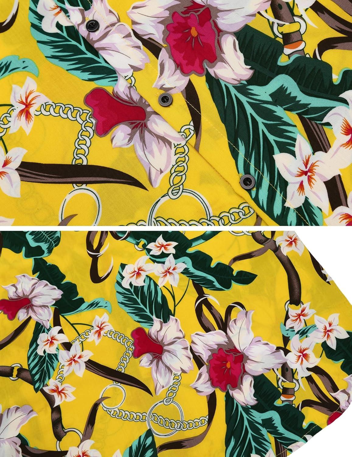 COOFANDY Men's Hawaiian Shirt and Short Set Flower 2-pieces Beach Outfit with Bucket Hats(Yellow Hawaiian)
