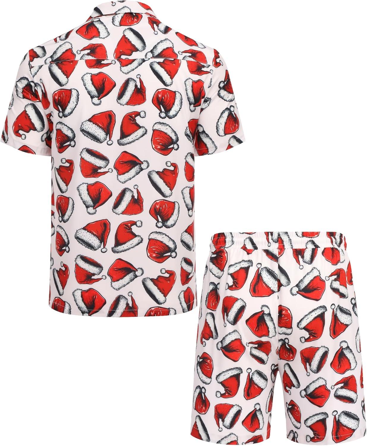 COOFANDY Mens Hawaiian Shirt and Shorts Set 2 Piece Vacation Outfits Floral Button Down Shirt(Santa Hat)