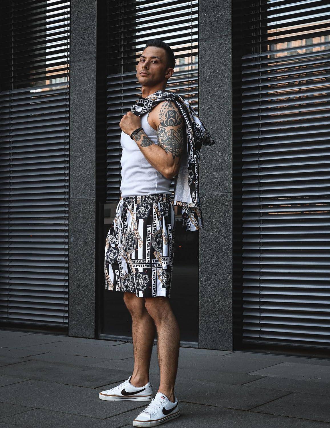 COOFANDY Mens Hawaiian Shirt and Shorts Set 2 Piece Vacation Outfits Floral Button Down Shirt(Black)