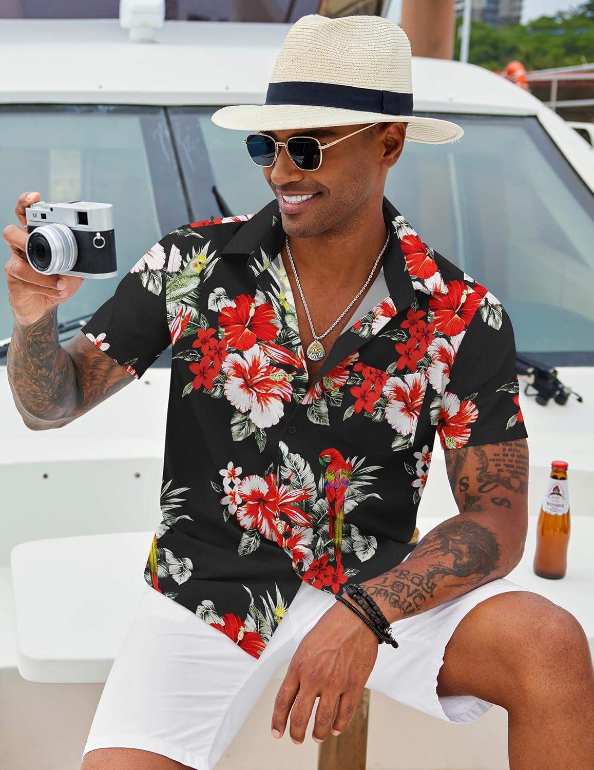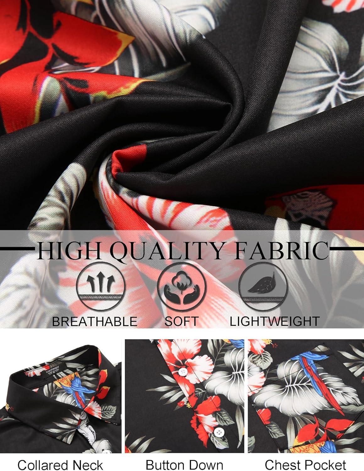 COOFANDY Mens Hawaiian Shirt Short Sleeve Button Down Shirt Tropical Summer Beach Shirt(Flower-red)