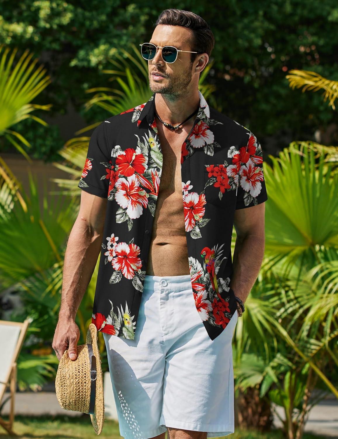 COOFANDY Mens Hawaiian Shirt Short Sleeve Button Down Shirt Tropical Summer Beach Shirt(Animal-parrot)