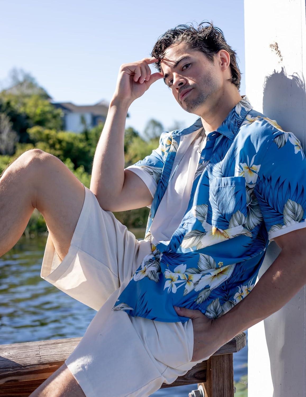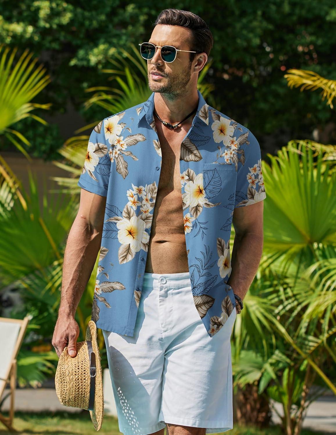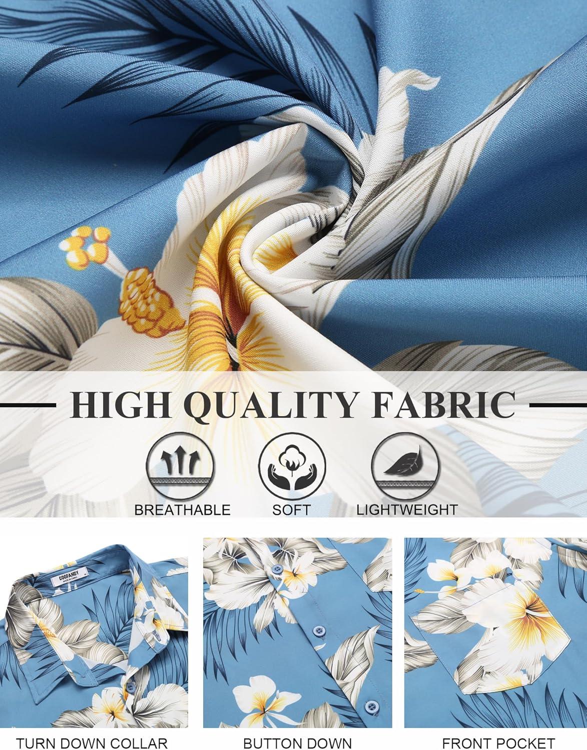 COOFANDY Mens Hawaiian Shirt Short Sleeve Button Down Shirt Tropical Summer Beach Shirt(Flower-blue)