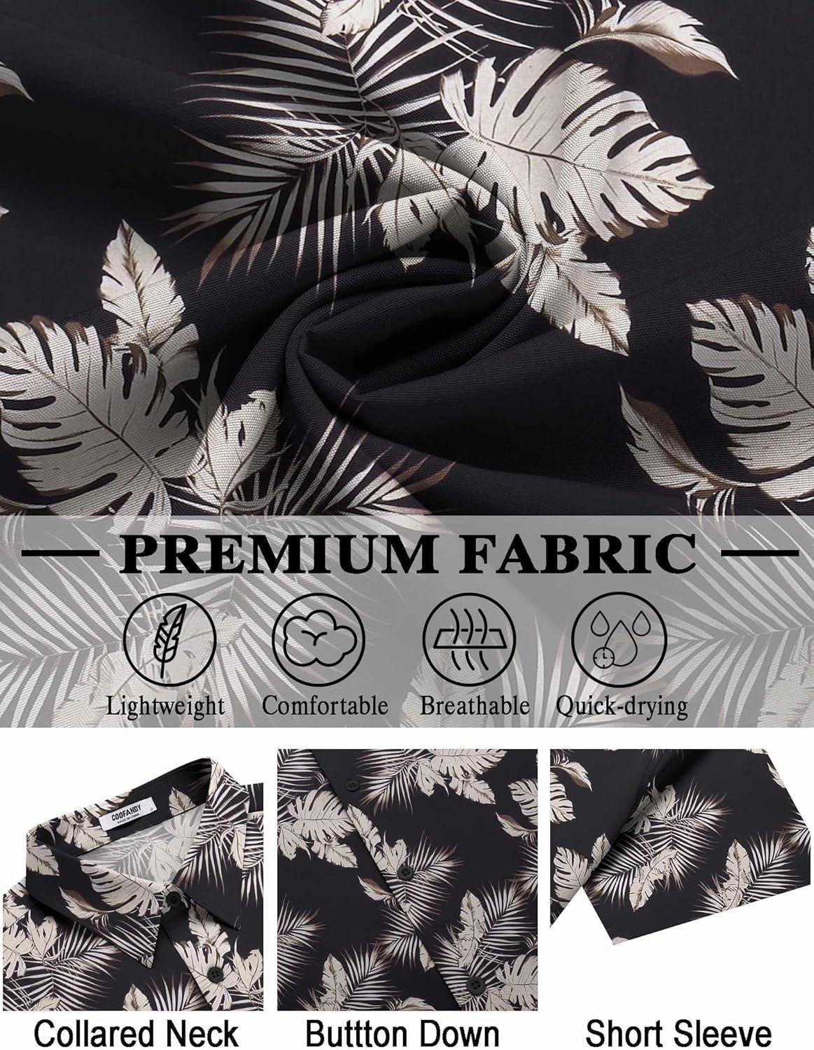 COOFANDY Mens Hawaiian Shirt Short Sleeve Button Down Shirts Tropical Floral Summer Beach Shirts(Black - Palm Leaf)