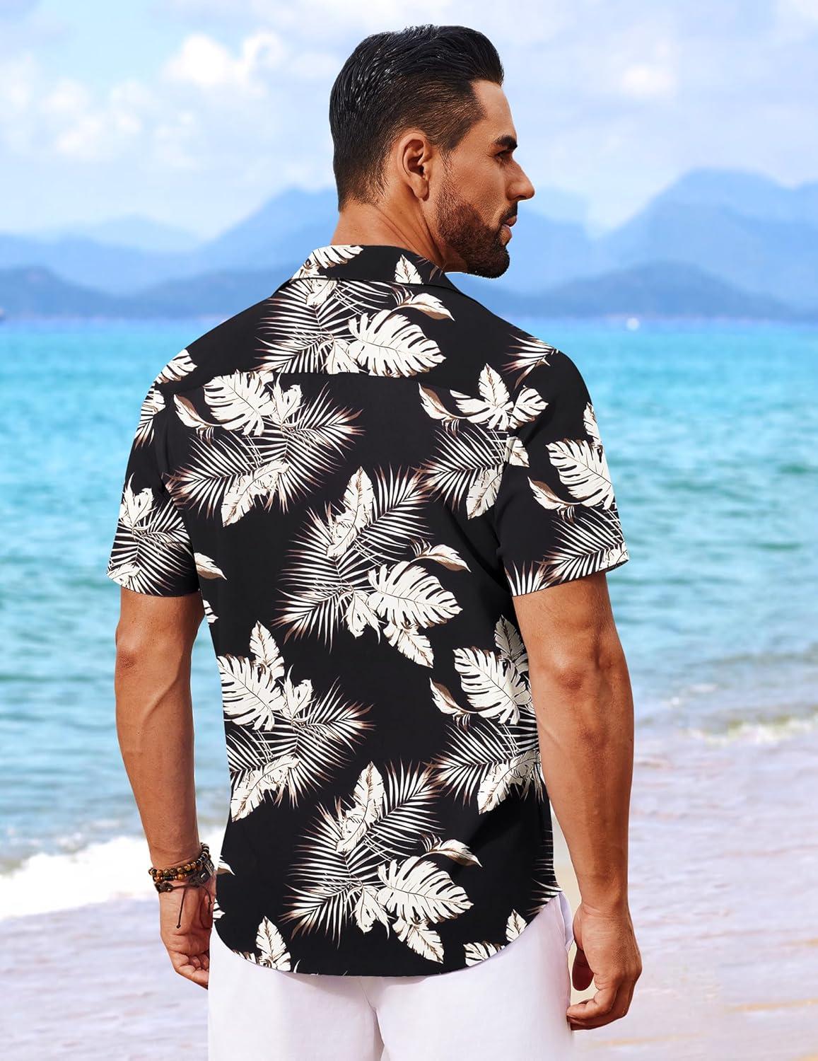 COOFANDY Mens Hawaiian Shirt Short Sleeve Button Down Shirts Tropical Floral Summer Beach Shirts(Black – Palm Leaf)