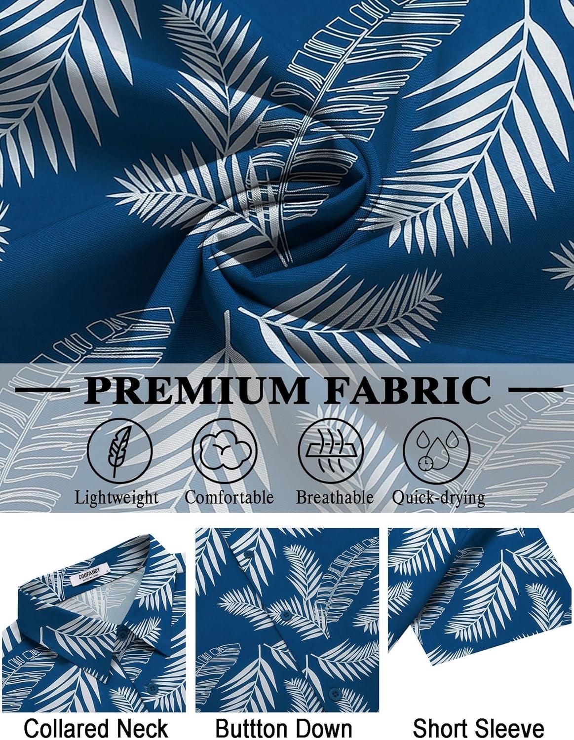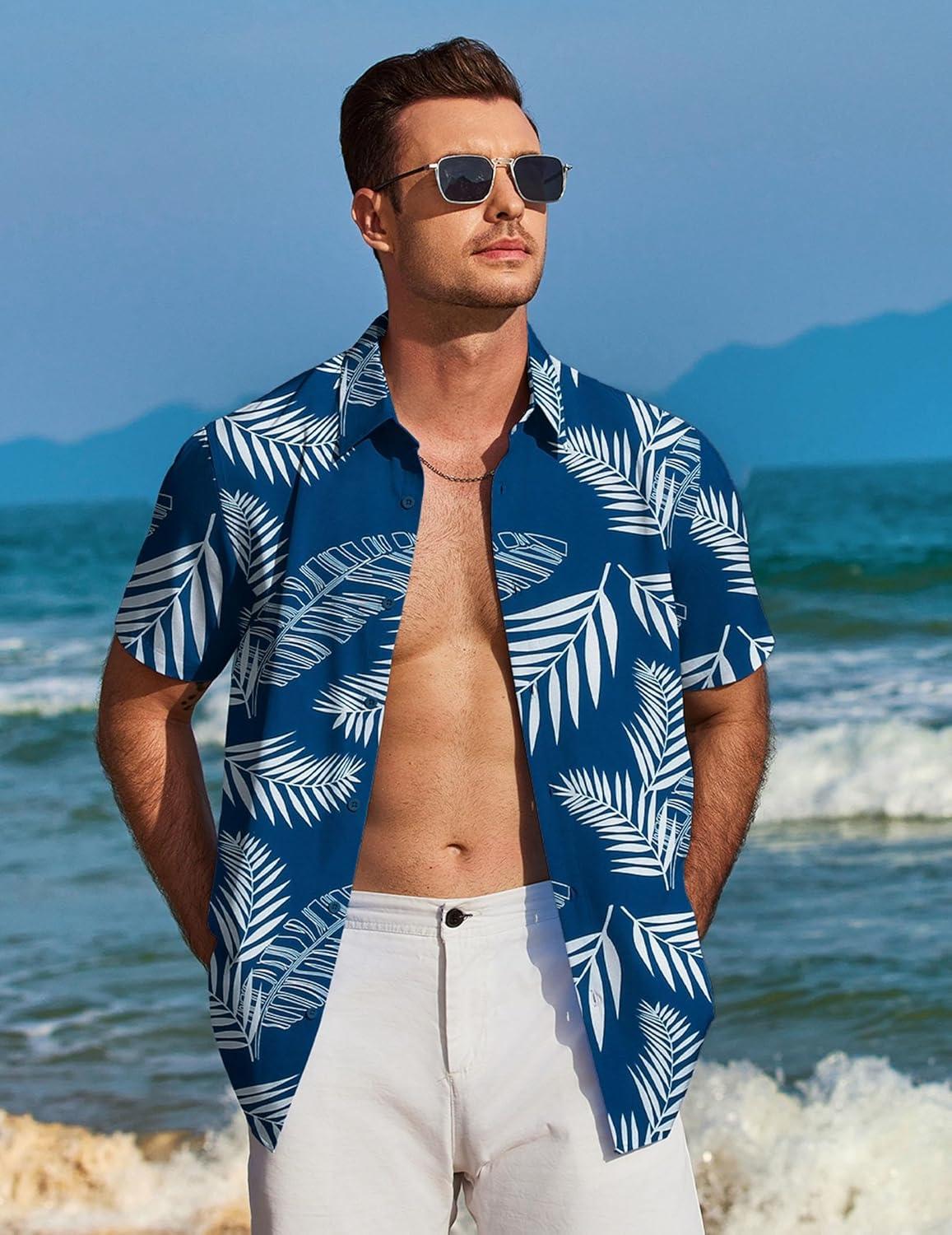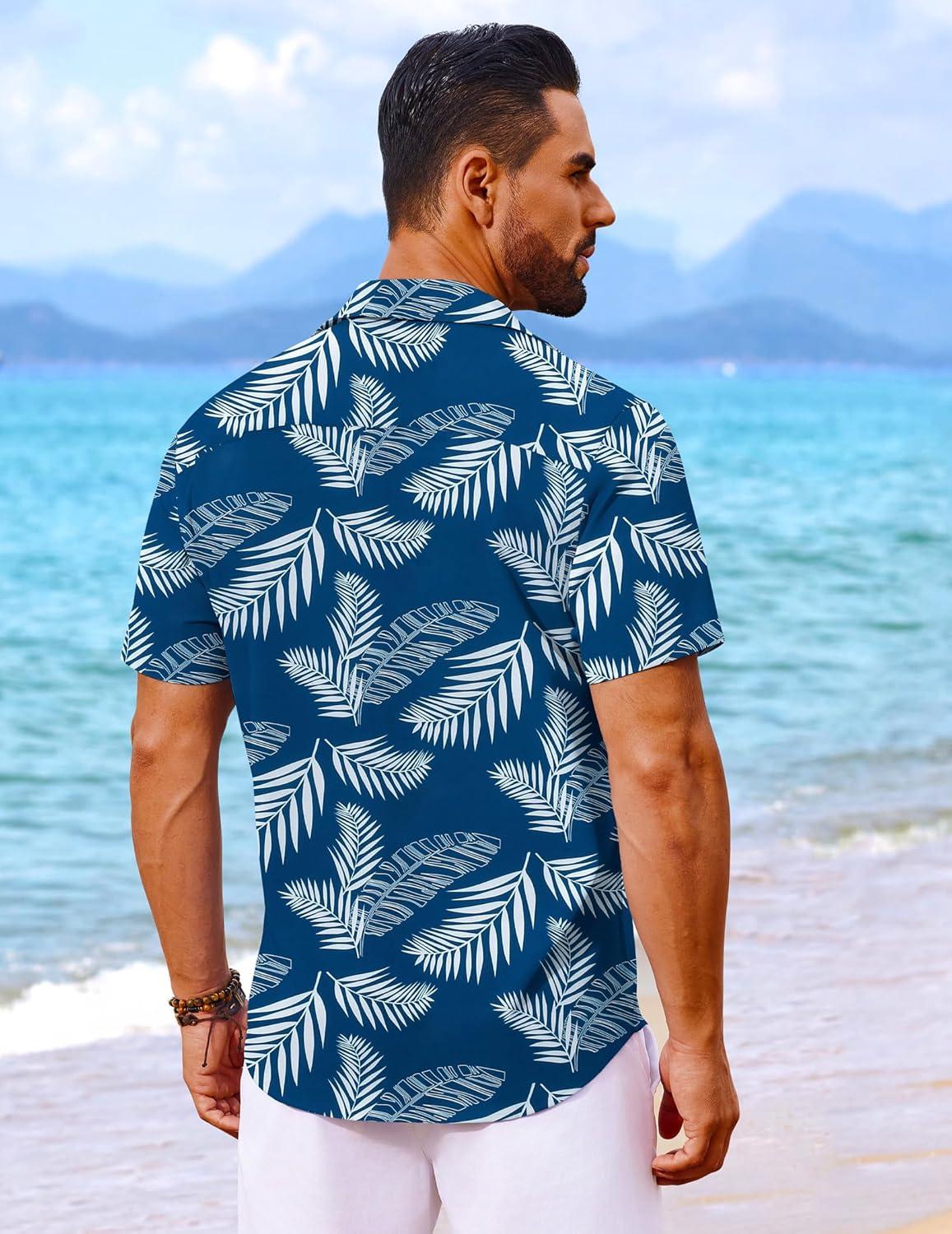 COOFANDY Mens Hawaiian Shirt Short Sleeve Button Down Shirts Tropical Floral Summer Beach Shirts(Blue - Palm Leaf)