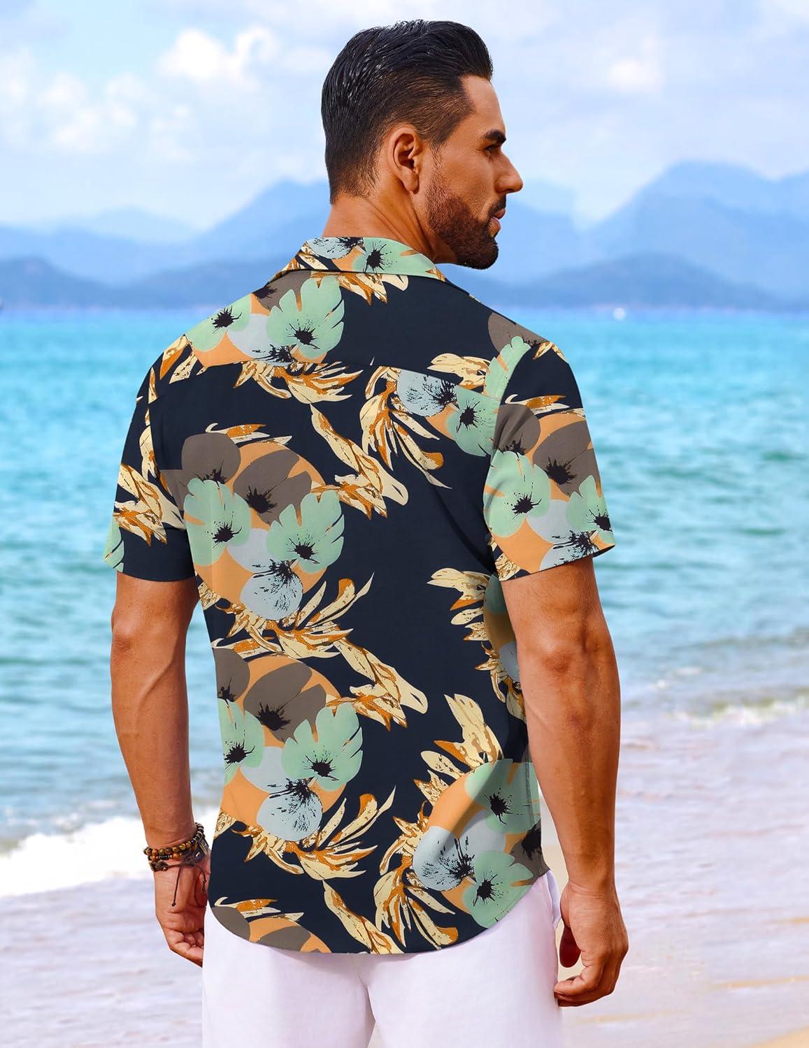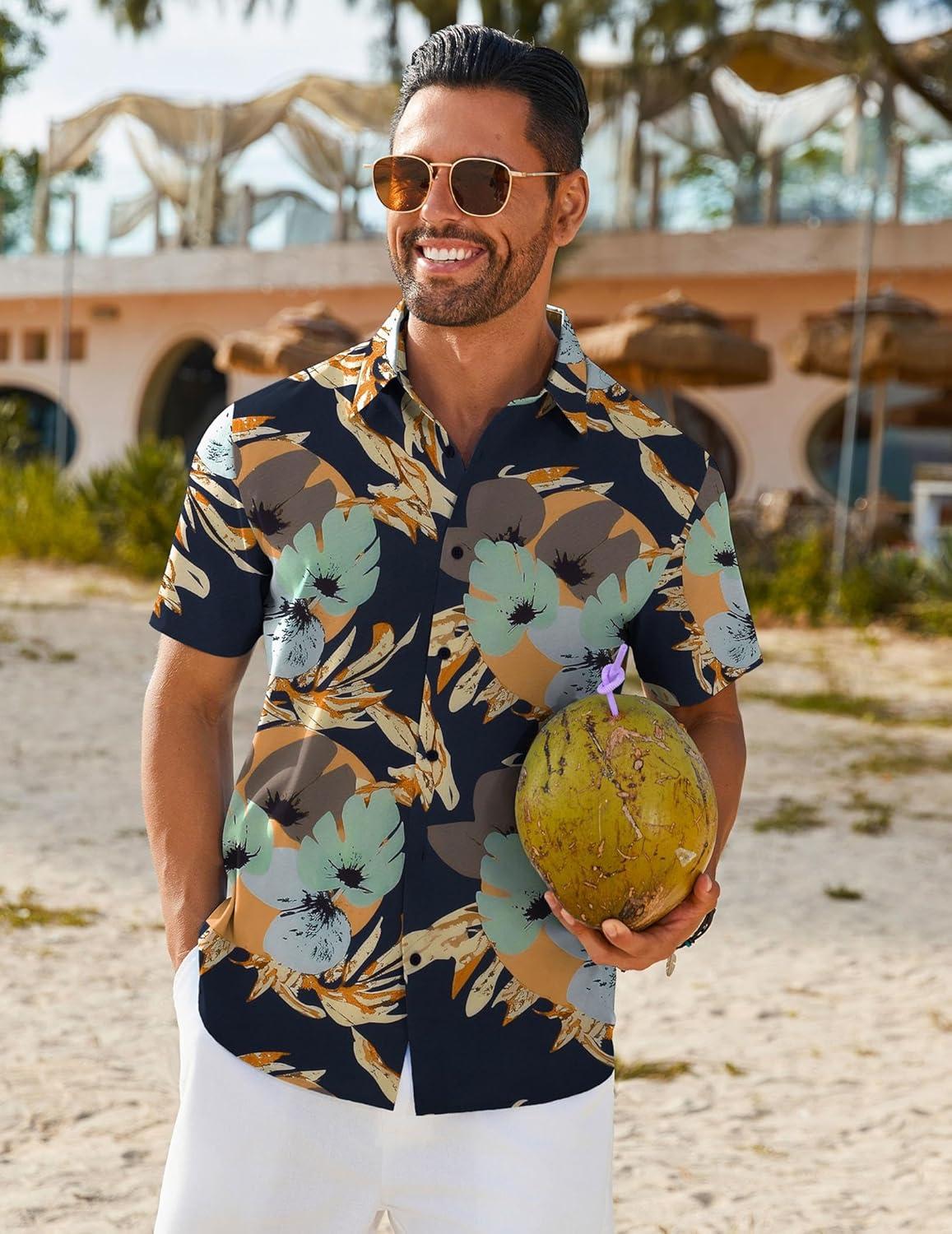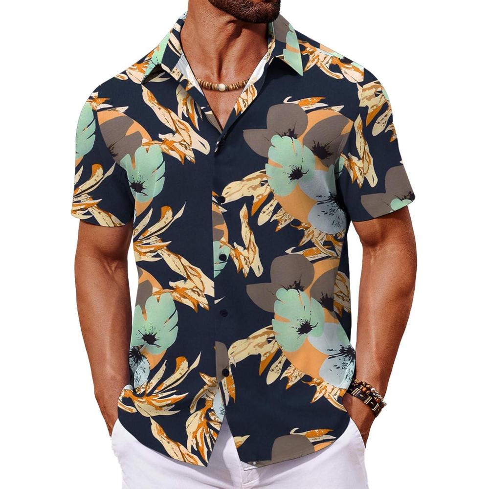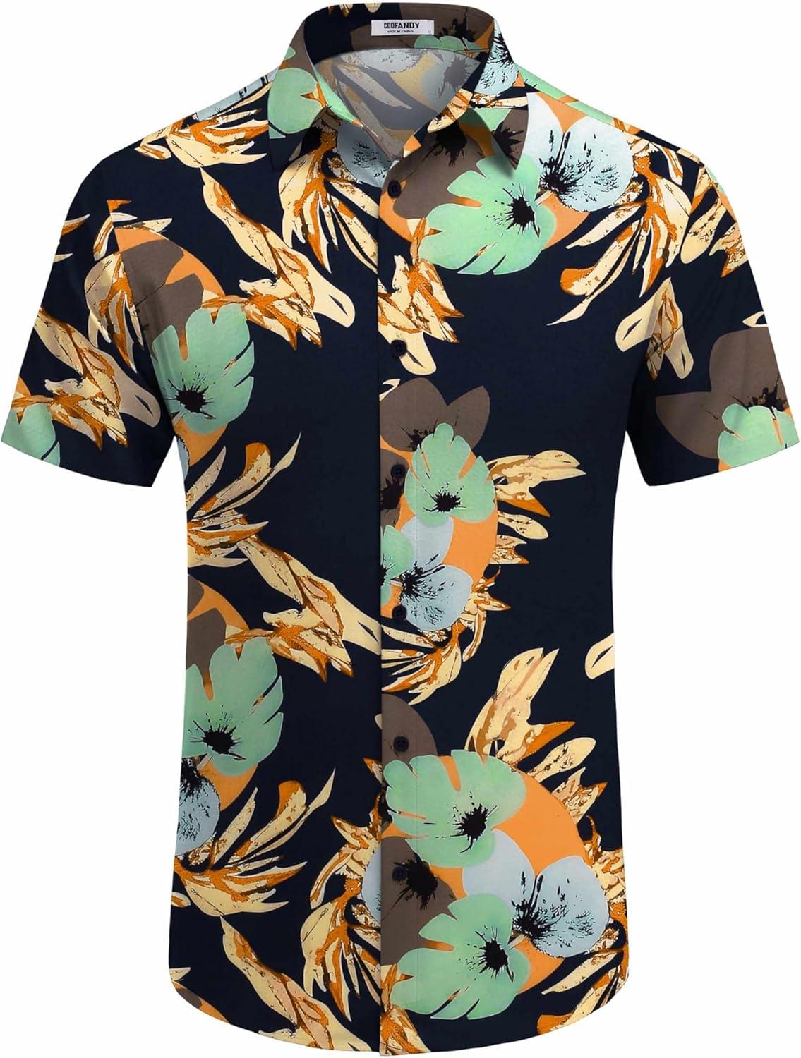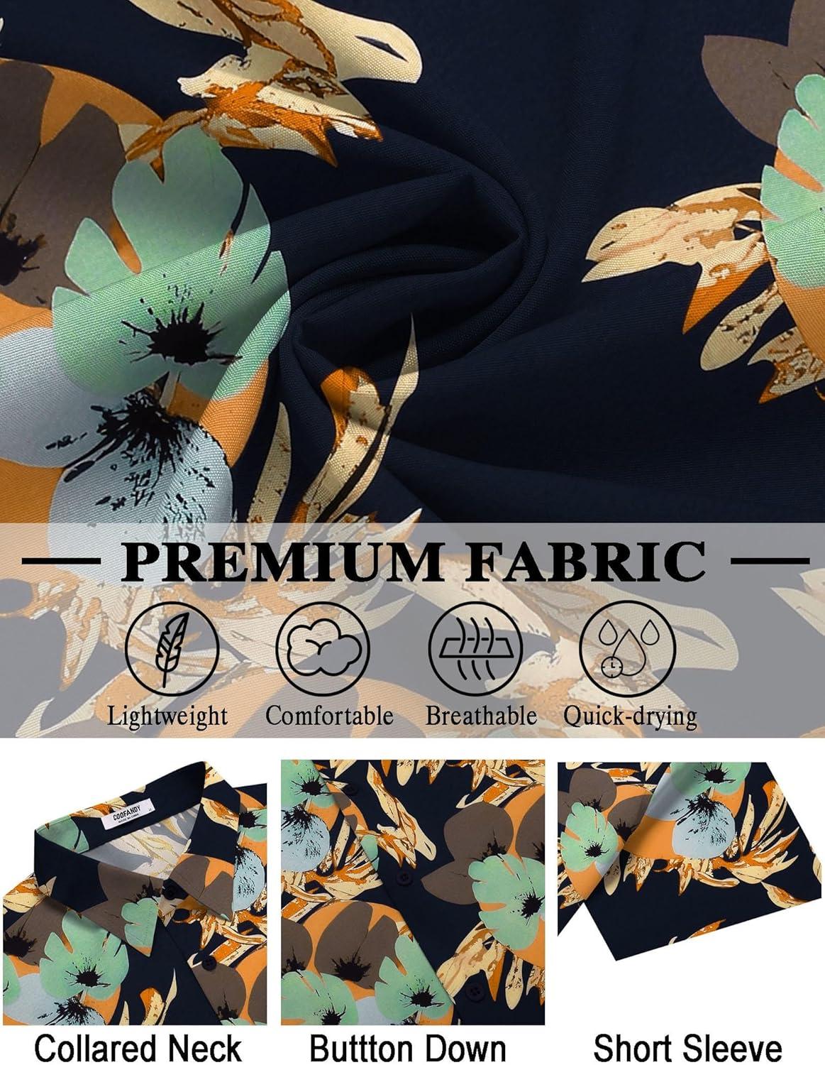 COOFANDY Mens Hawaiian Shirt Short Sleeve Button Down Shirts Tropical Floral Summer Beach Shirts(Navy - Abstract Print)