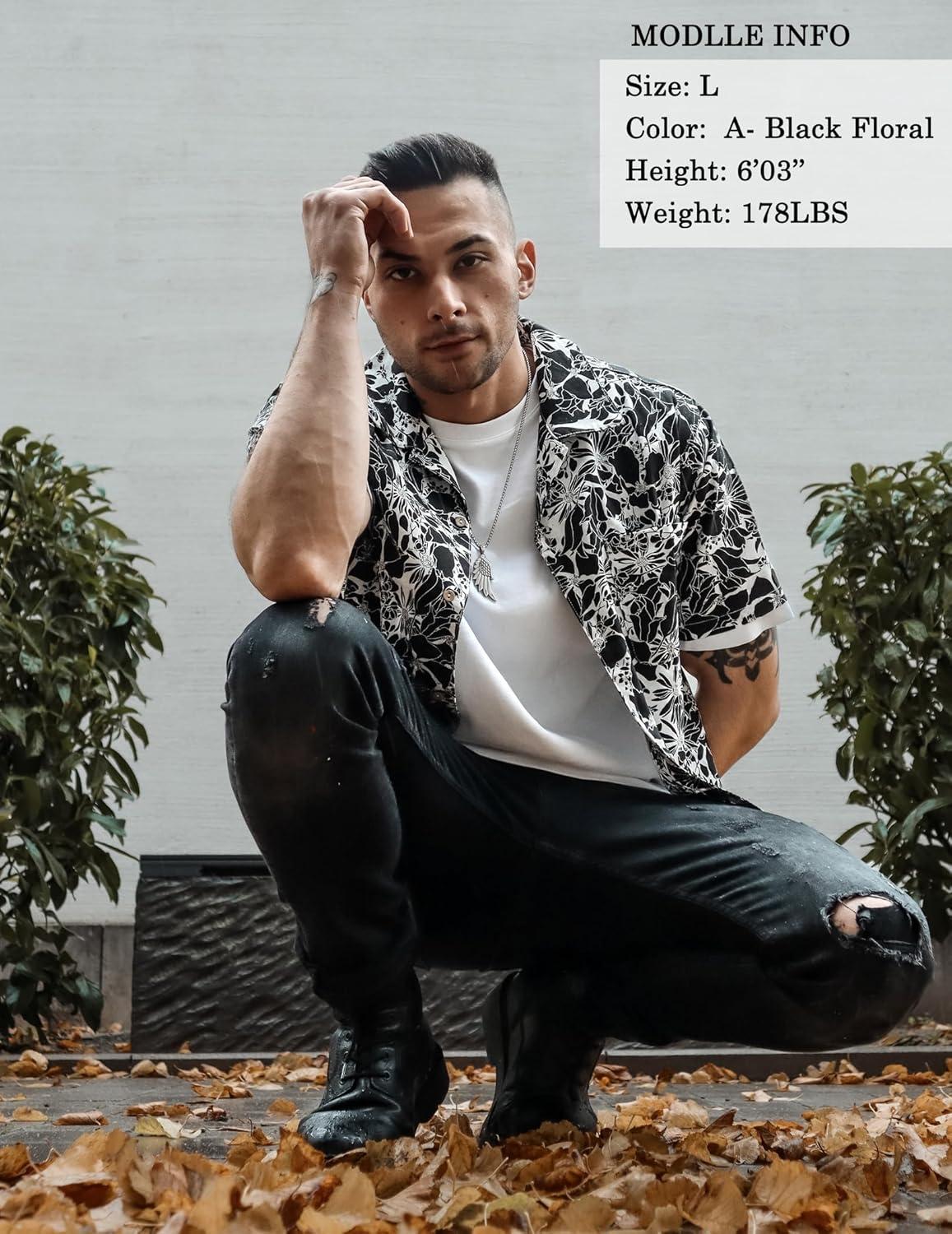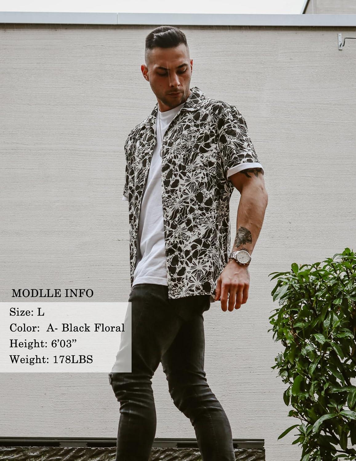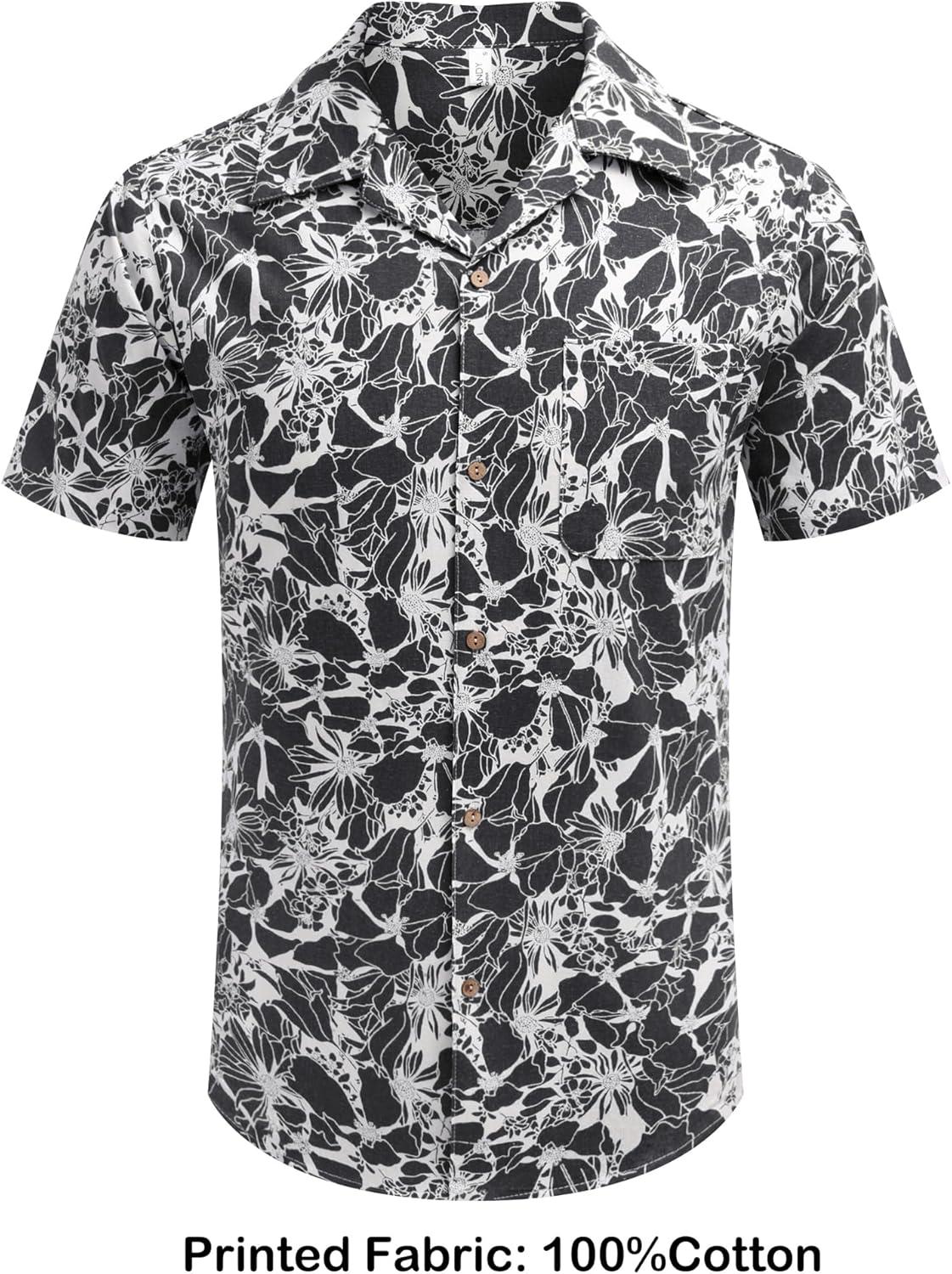 COOFANDY Mens Hawaiian Shirt Short Sleeve Buttoon Down Shirts Casual Tropical Floral Summer Linen Shirts(Black Floral)
