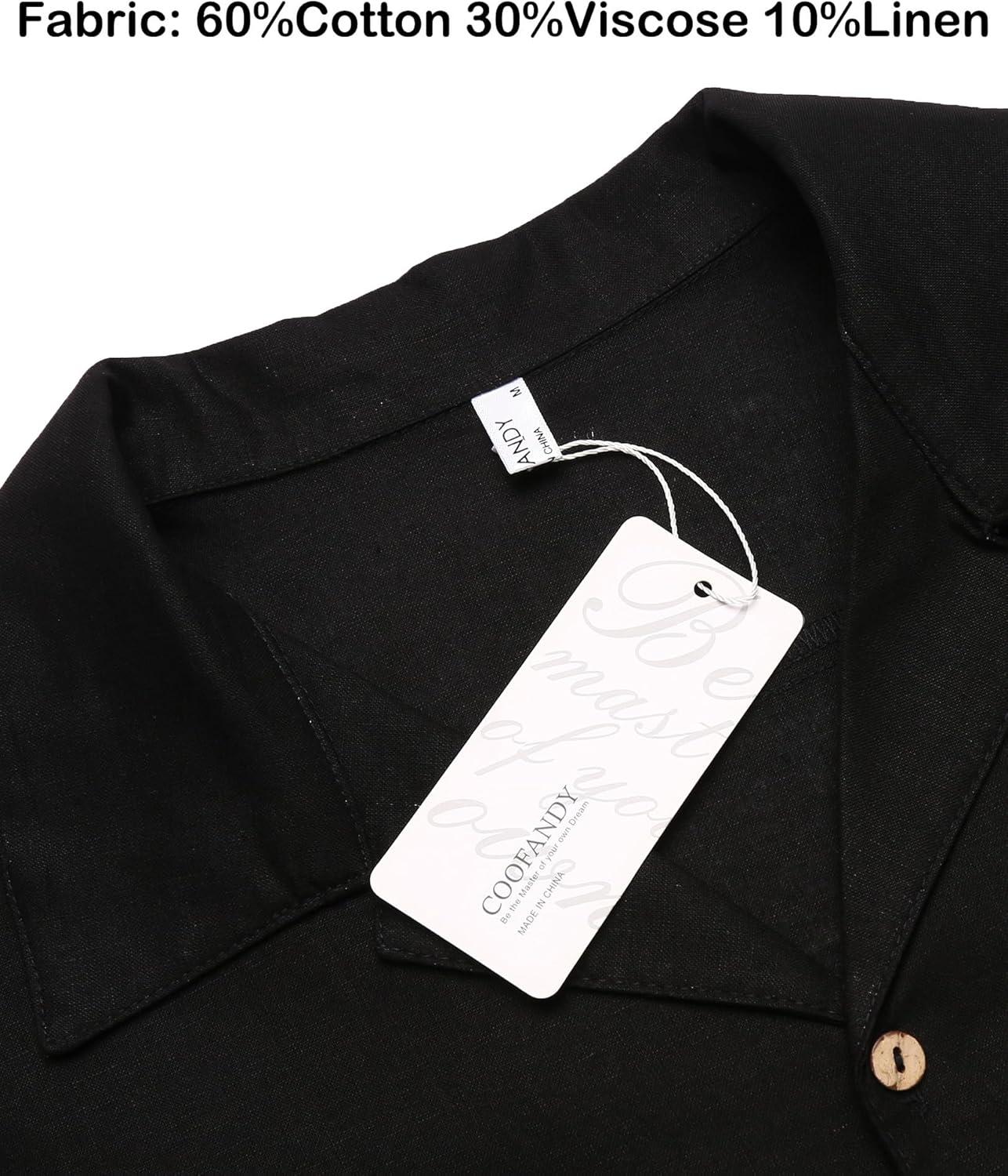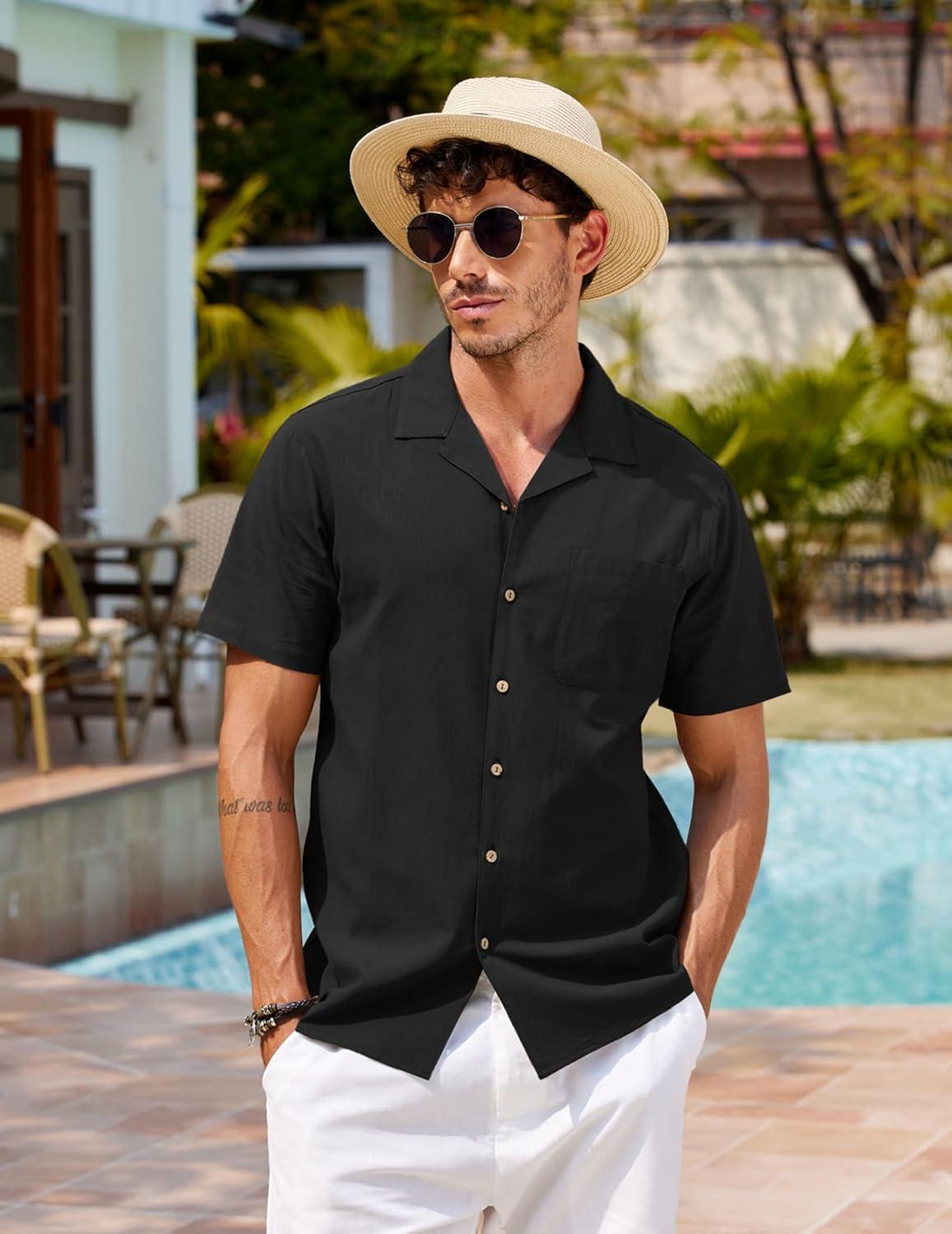 imageCOOFANDY Mens Hawaiian Shirt Short Sleeve Buttoon Down Shirts Casual Tropical Floral Summer Linen ShirtsBlack