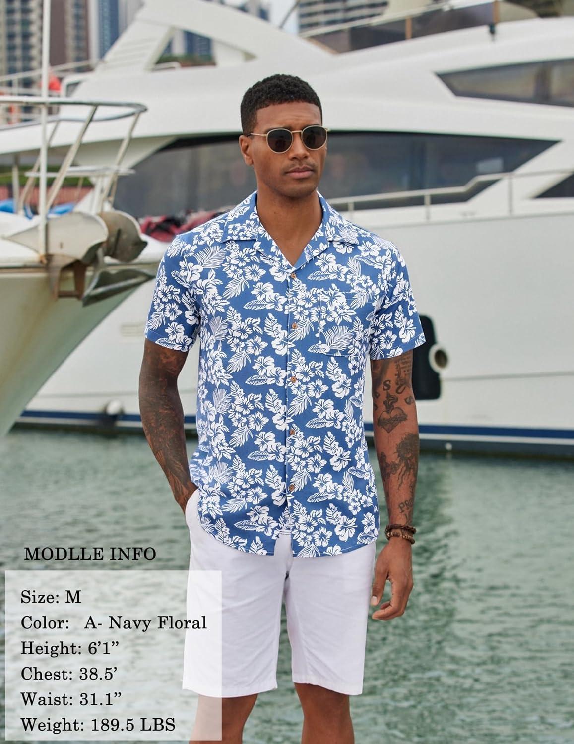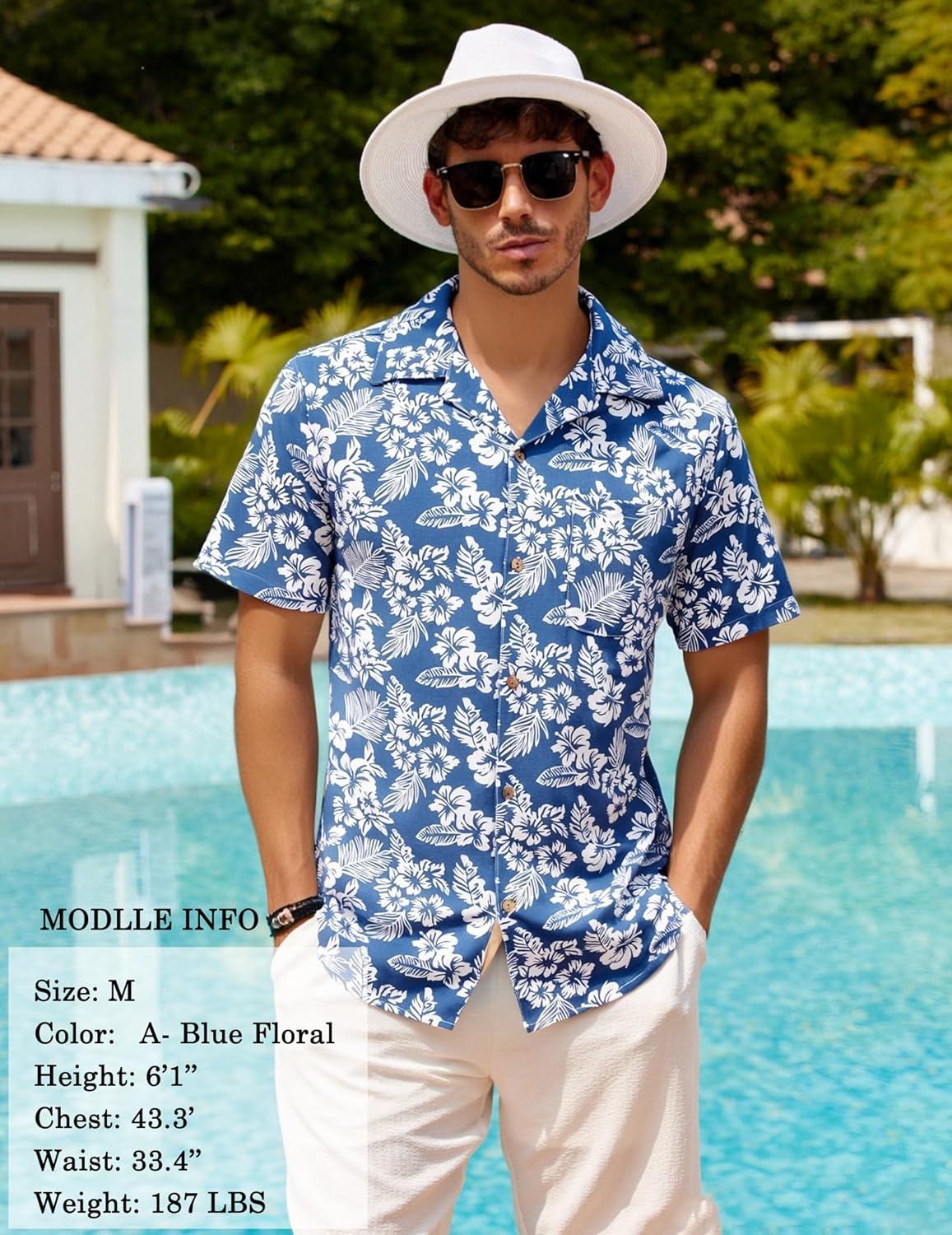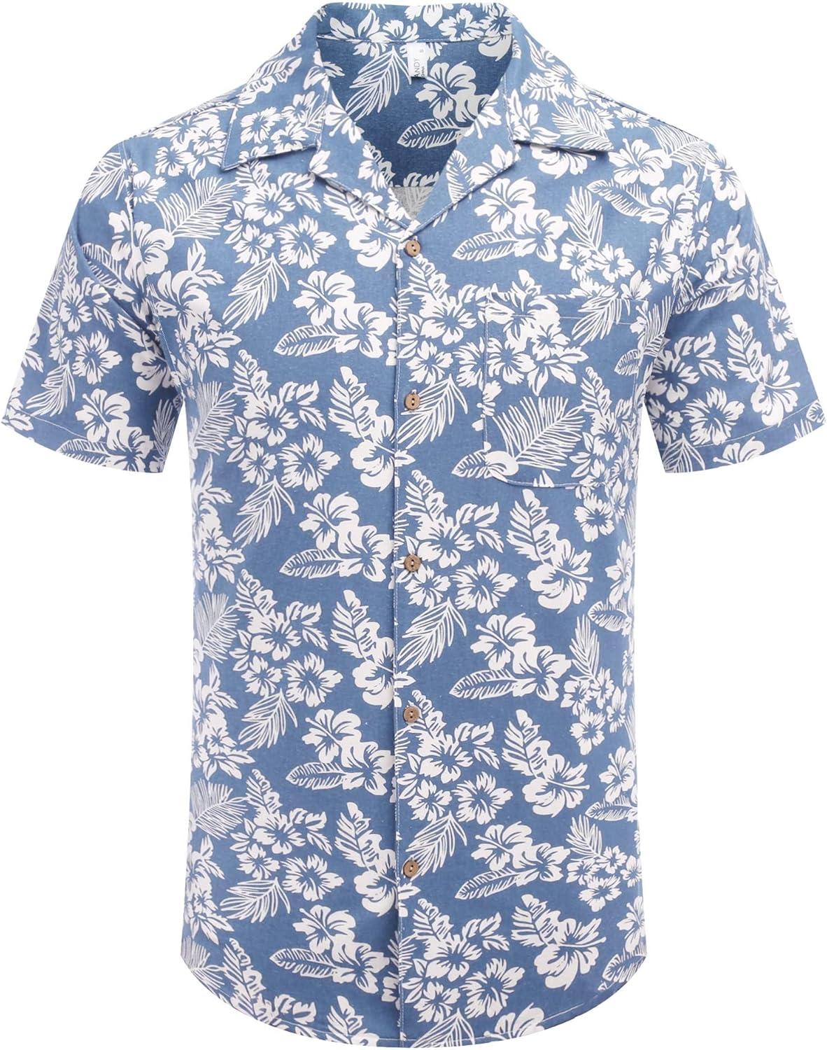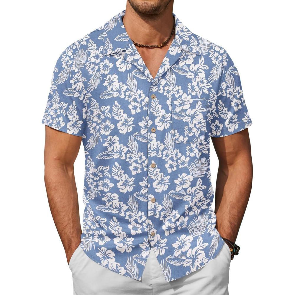 COOFANDY Mens Hawaiian Shirt Short Sleeve Buttoon Down Shirts Casual Tropical Floral Summer Linen Shirts(Blue Floral)