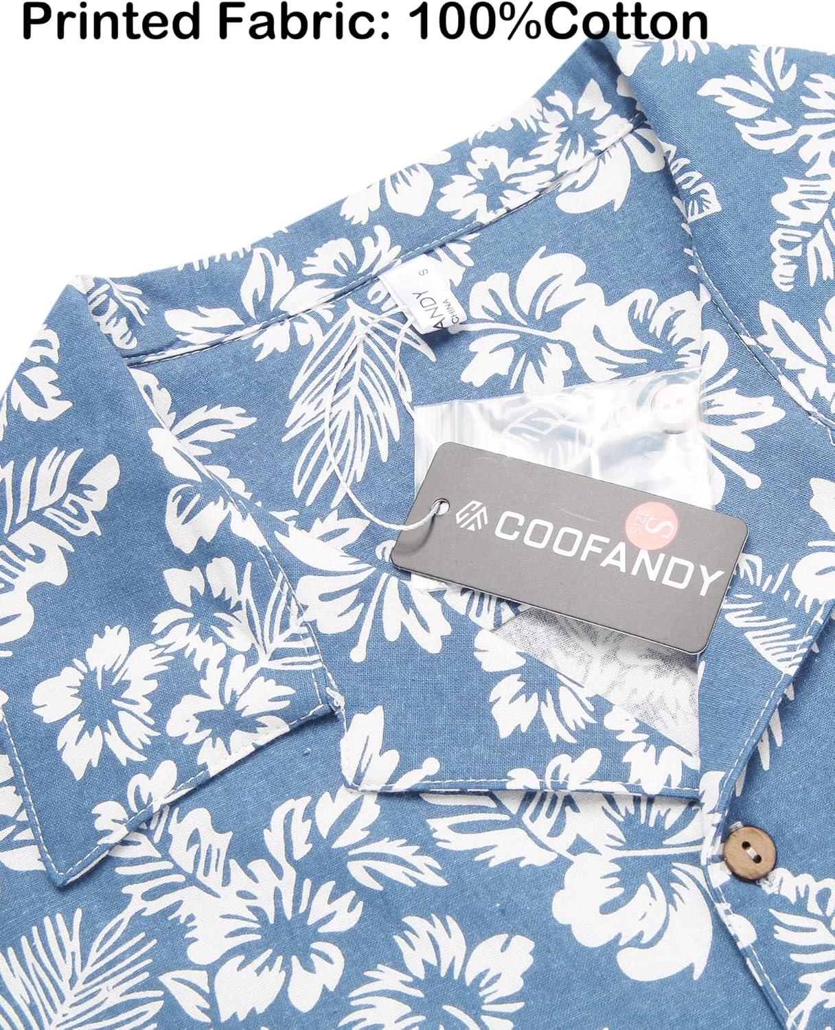 COOFANDY Mens Hawaiian Shirt Short Sleeve Buttoon Down Shirts Casual Tropical Floral Summer Linen Shirts(Blue Leaves)