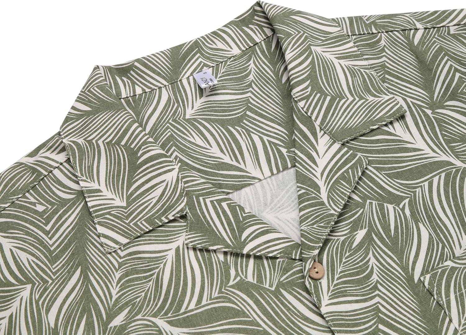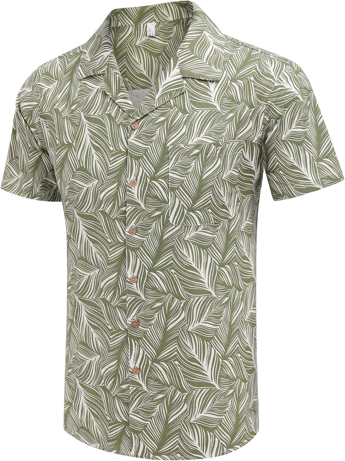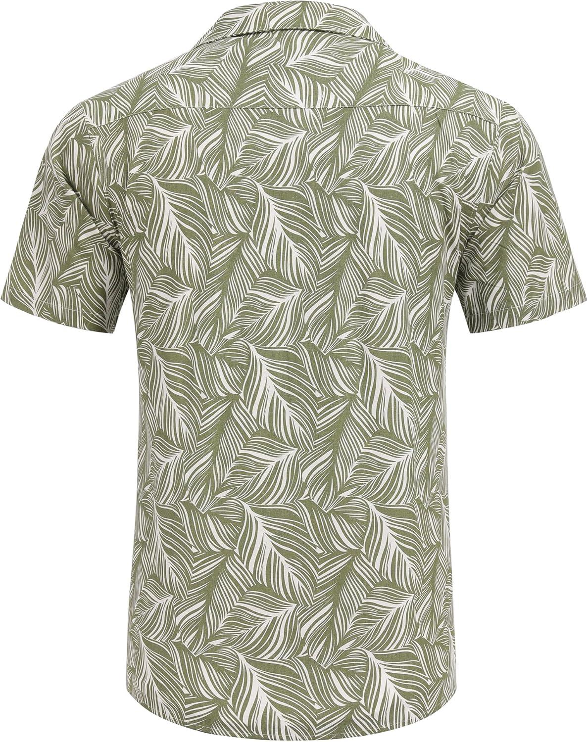 COOFANDY Mens Hawaiian Shirt Short Sleeve Buttoon Down Shirts Casual Tropical Floral Summer Linen Shirts(Celadon Green Leaves)