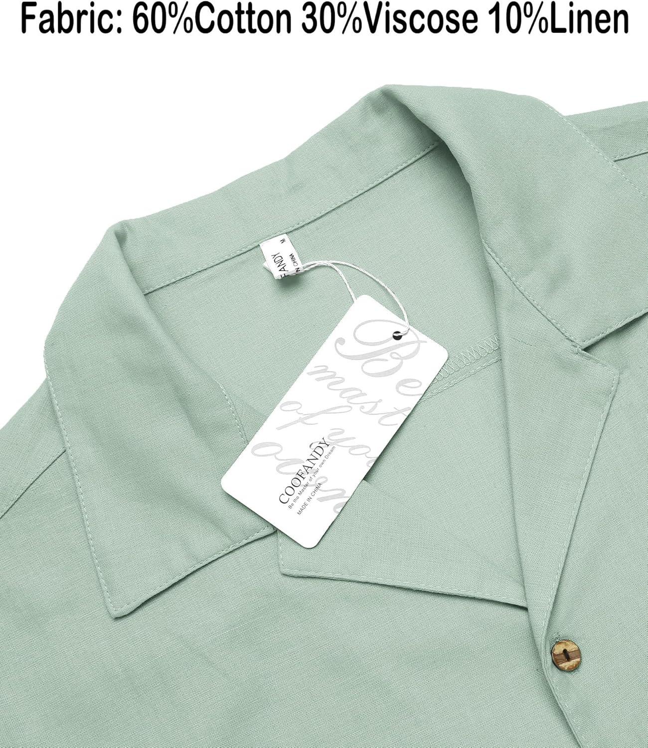 imageCOOFANDY Mens Hawaiian Shirt Short Sleeve Buttoon Down Shirts Casual Tropical Floral Summer Linen ShirtsCeladon Green