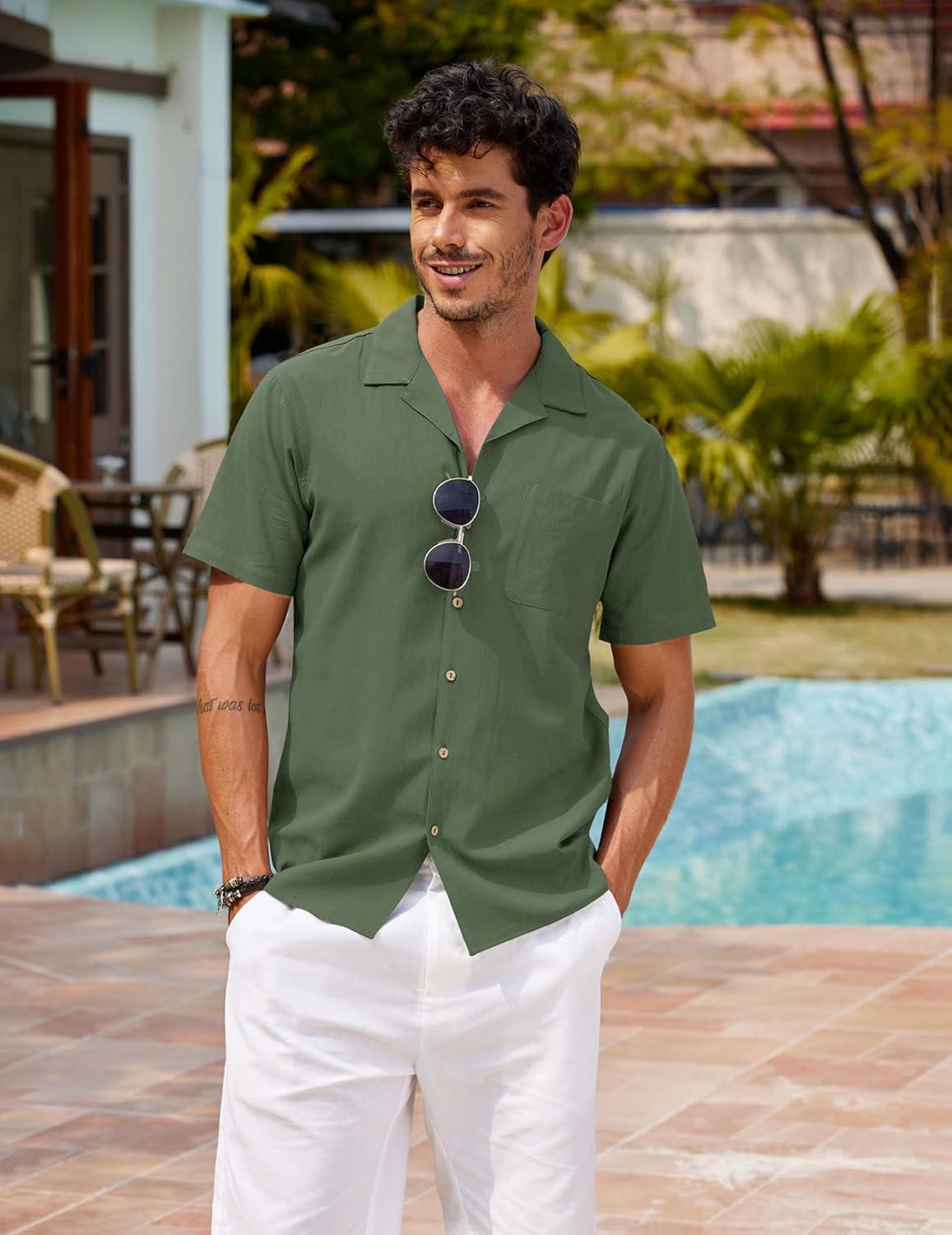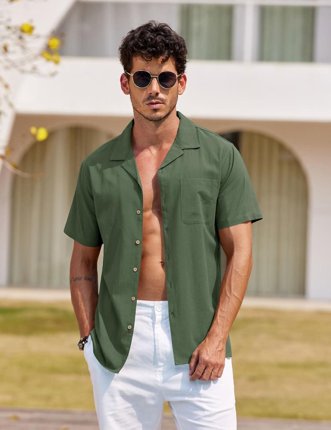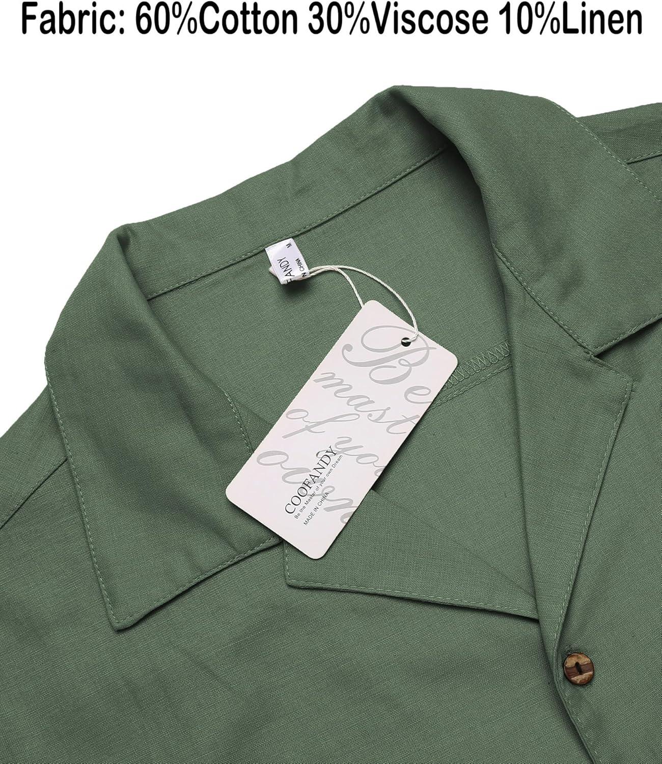 COOFANDY Mens Hawaiian Shirt Short Sleeve Buttoon Down Shirts Casual Tropical Floral Summer Linen Shirts(Army Green)