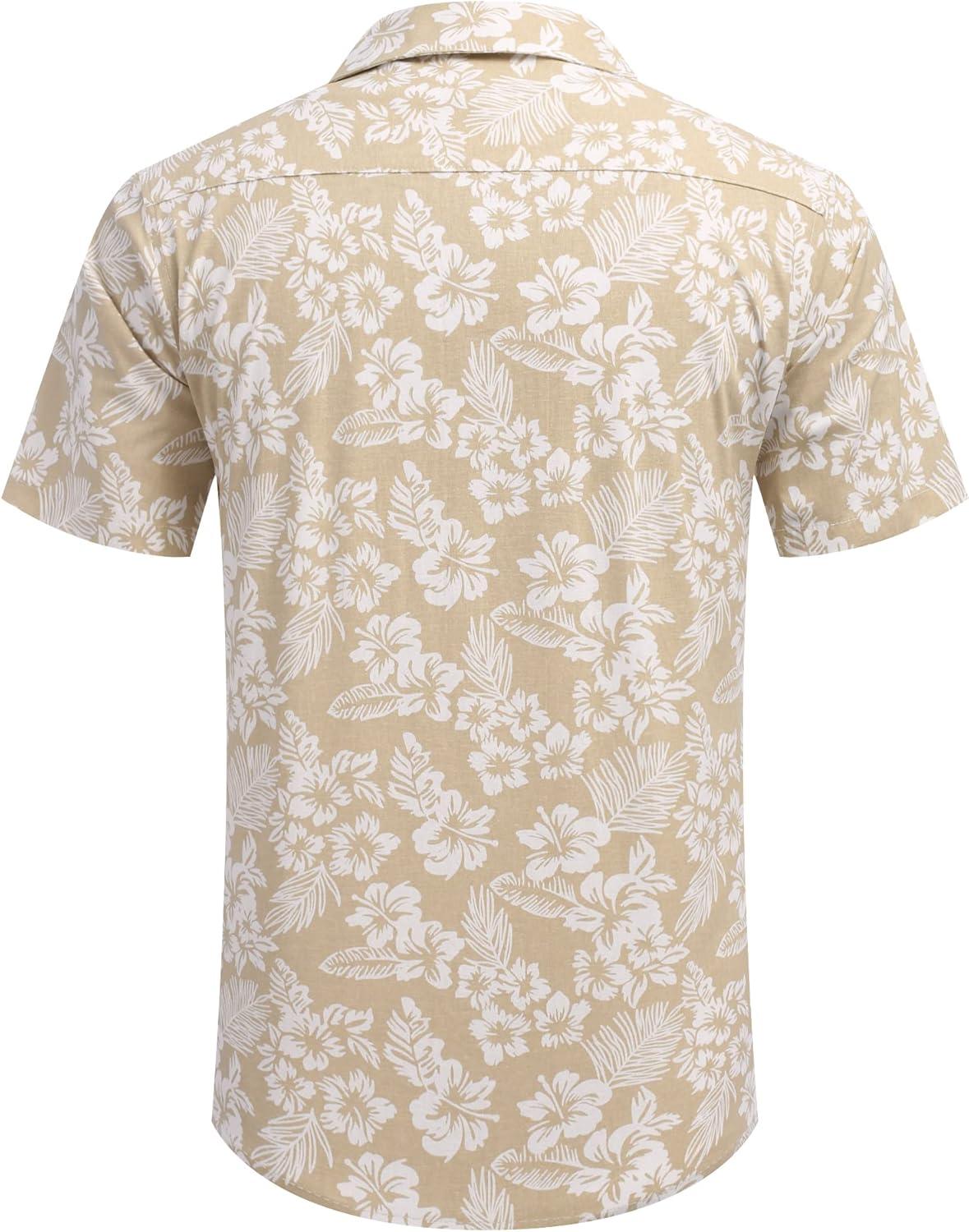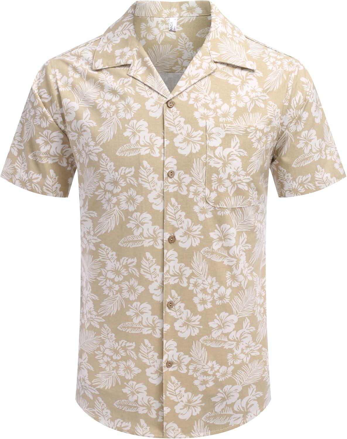 COOFANDY Mens Hawaiian Shirt Short Sleeve Buttoon Down Shirts Casual Tropical Floral Summer Linen Shirts(Khaki)