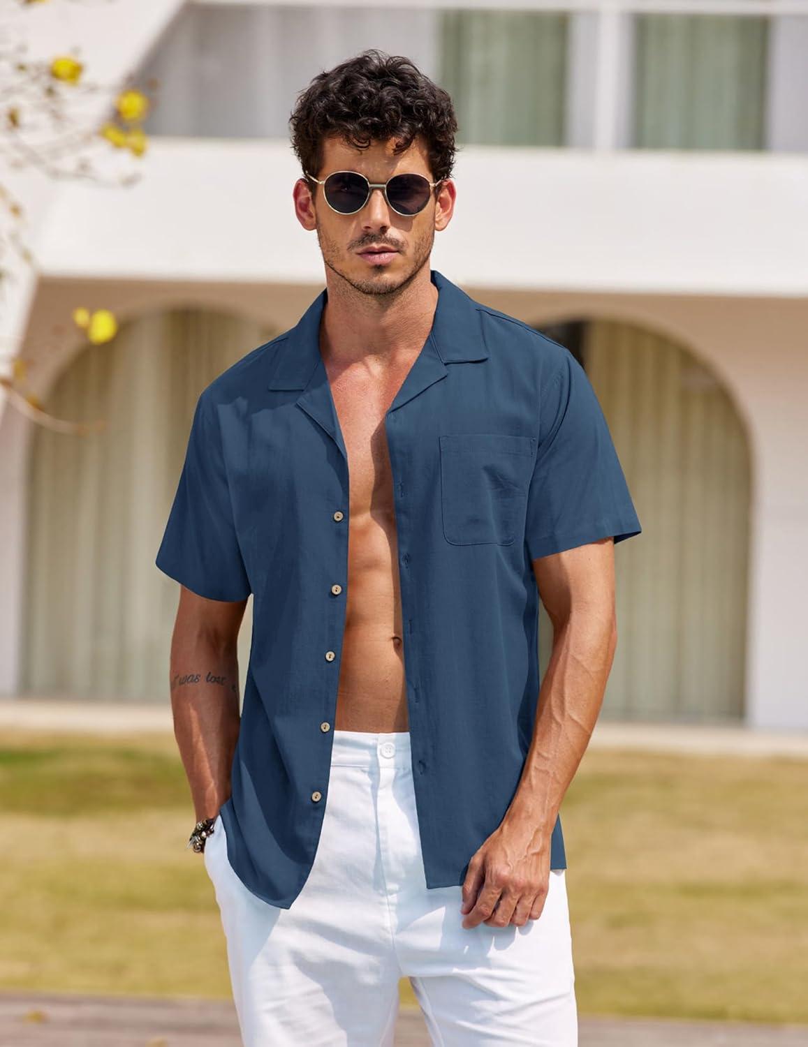 imageCOOFANDY Mens Hawaiian Shirt Short Sleeve Buttoon Down Shirts Casual Tropical Floral Summer Linen ShirtsNavy