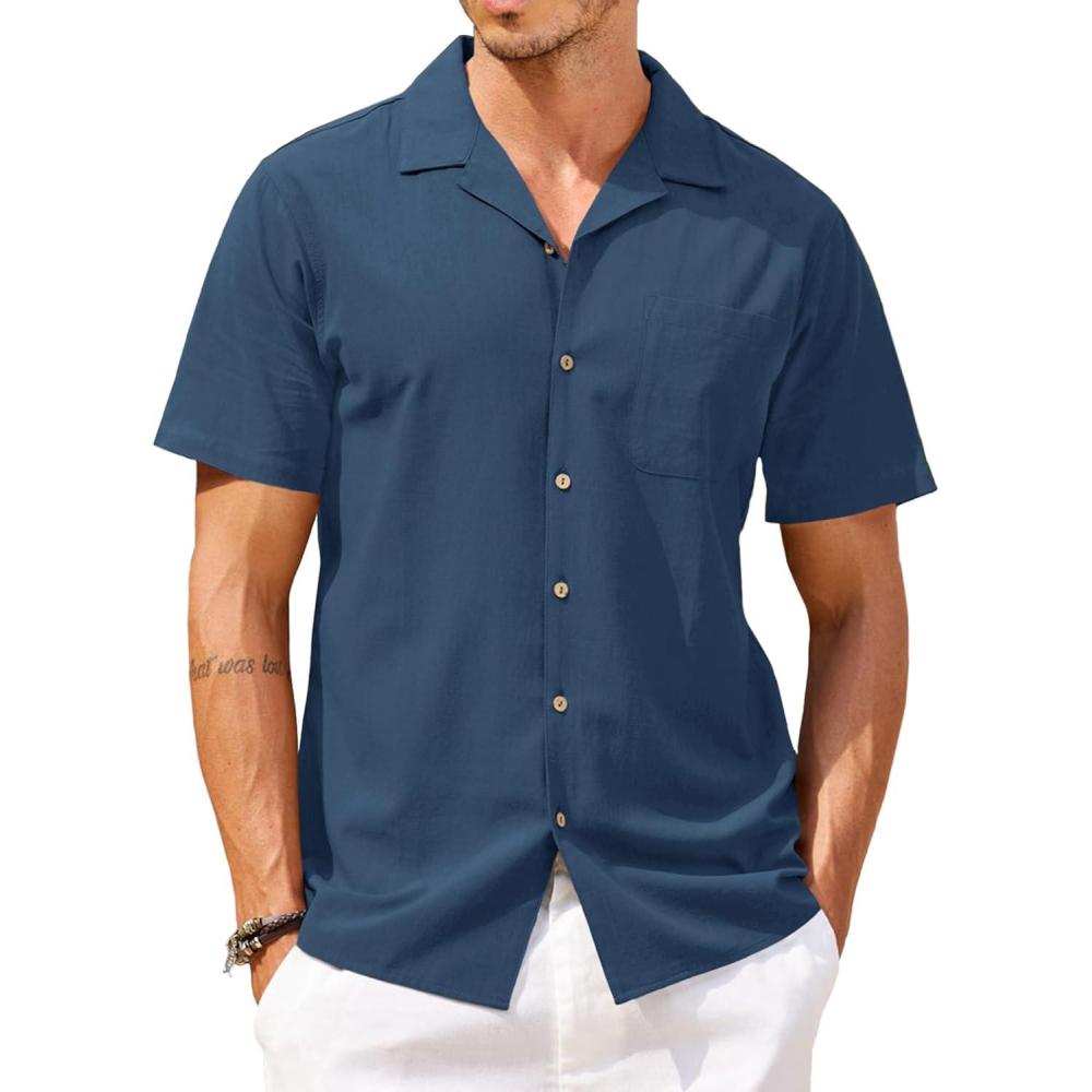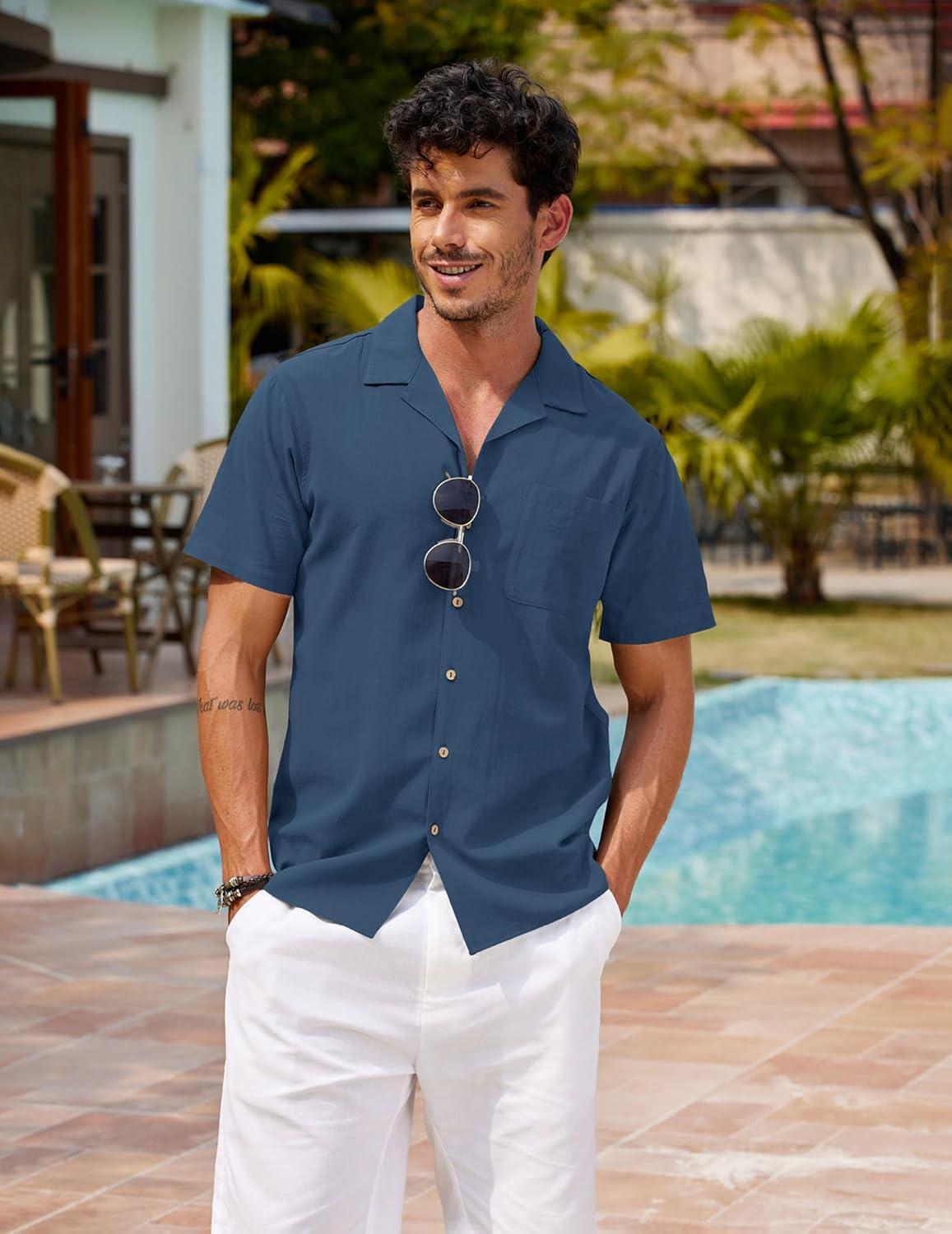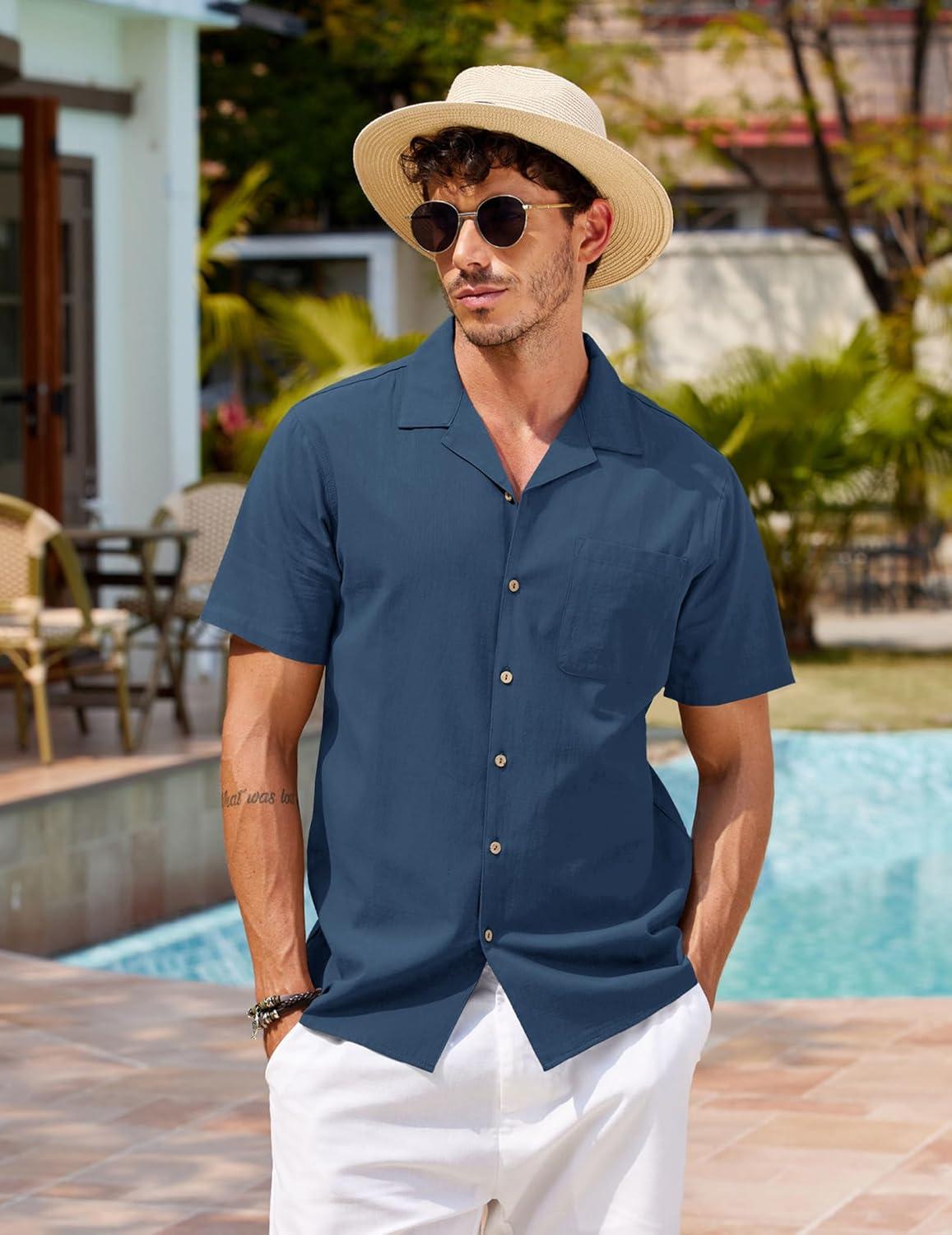 COOFANDY Mens Hawaiian Shirt Short Sleeve Buttoon Down Shirts Casual Tropical Floral Summer Linen Shirts(Navy)