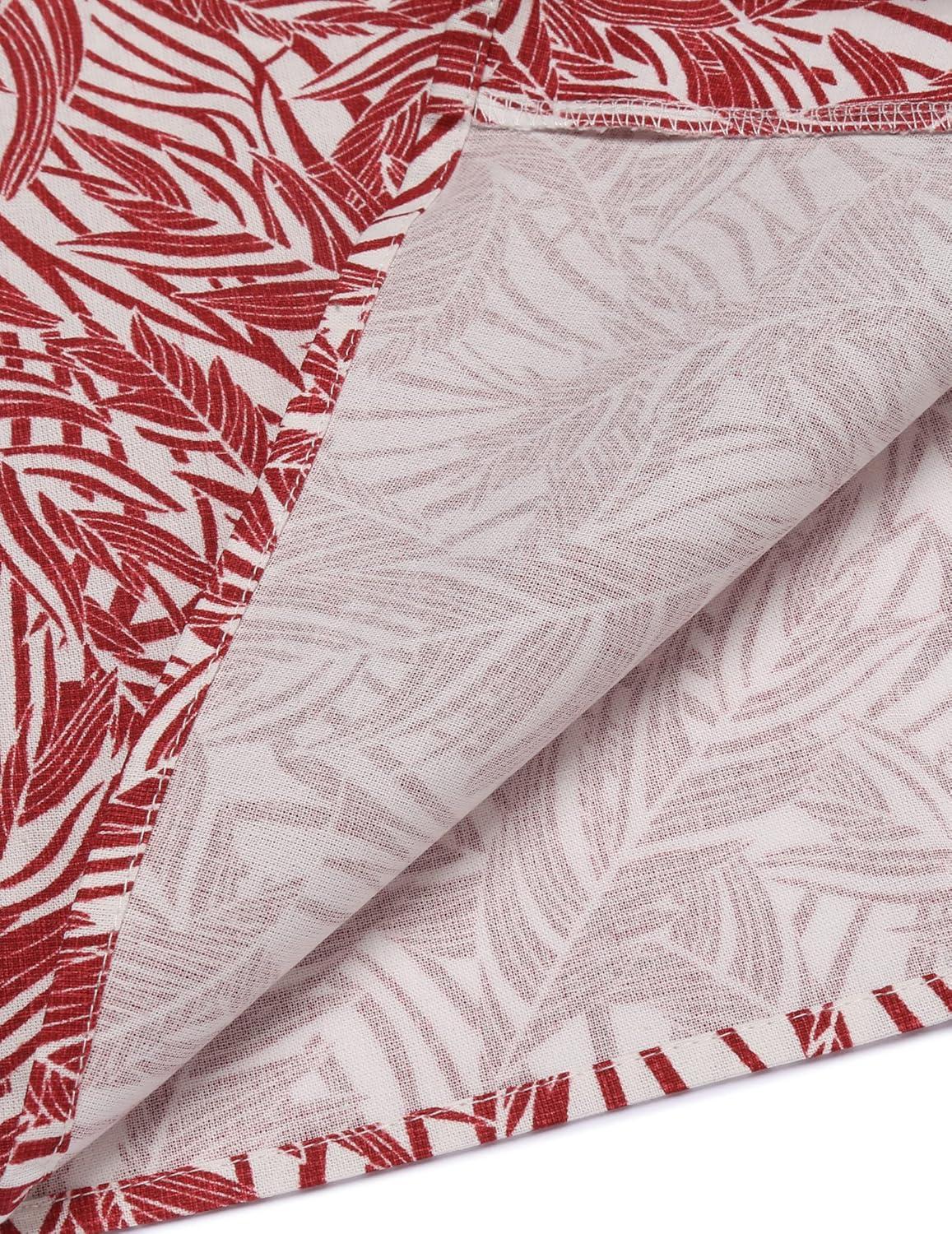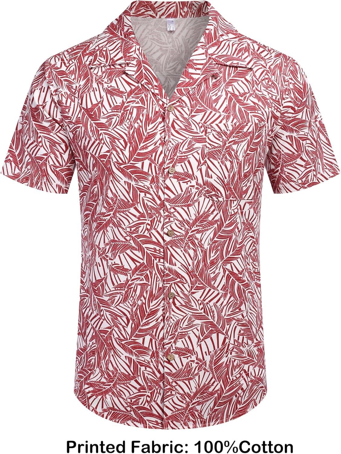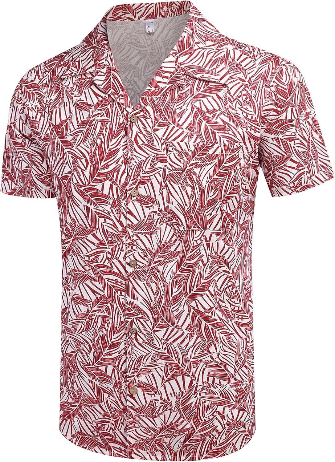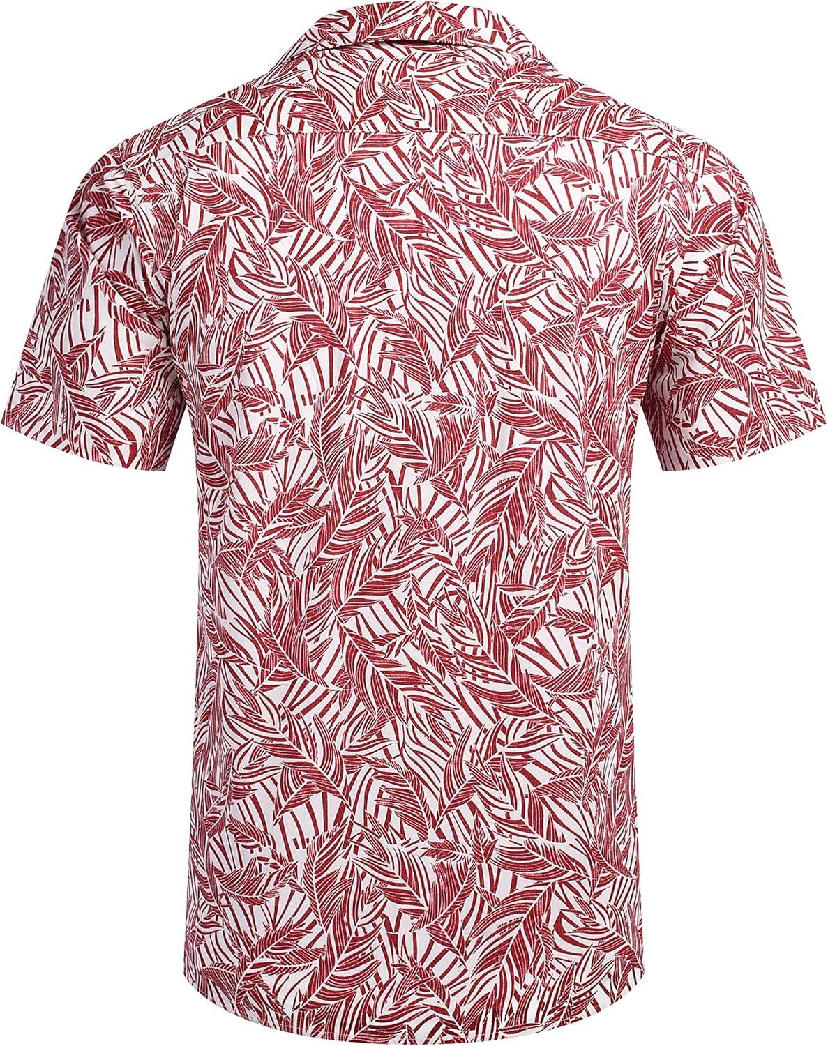 COOFANDY Mens Hawaiian Shirt Short Sleeve Buttoon Down Shirts Casual Tropical Floral Summer Linen Shirts(Palm Leaf-red)