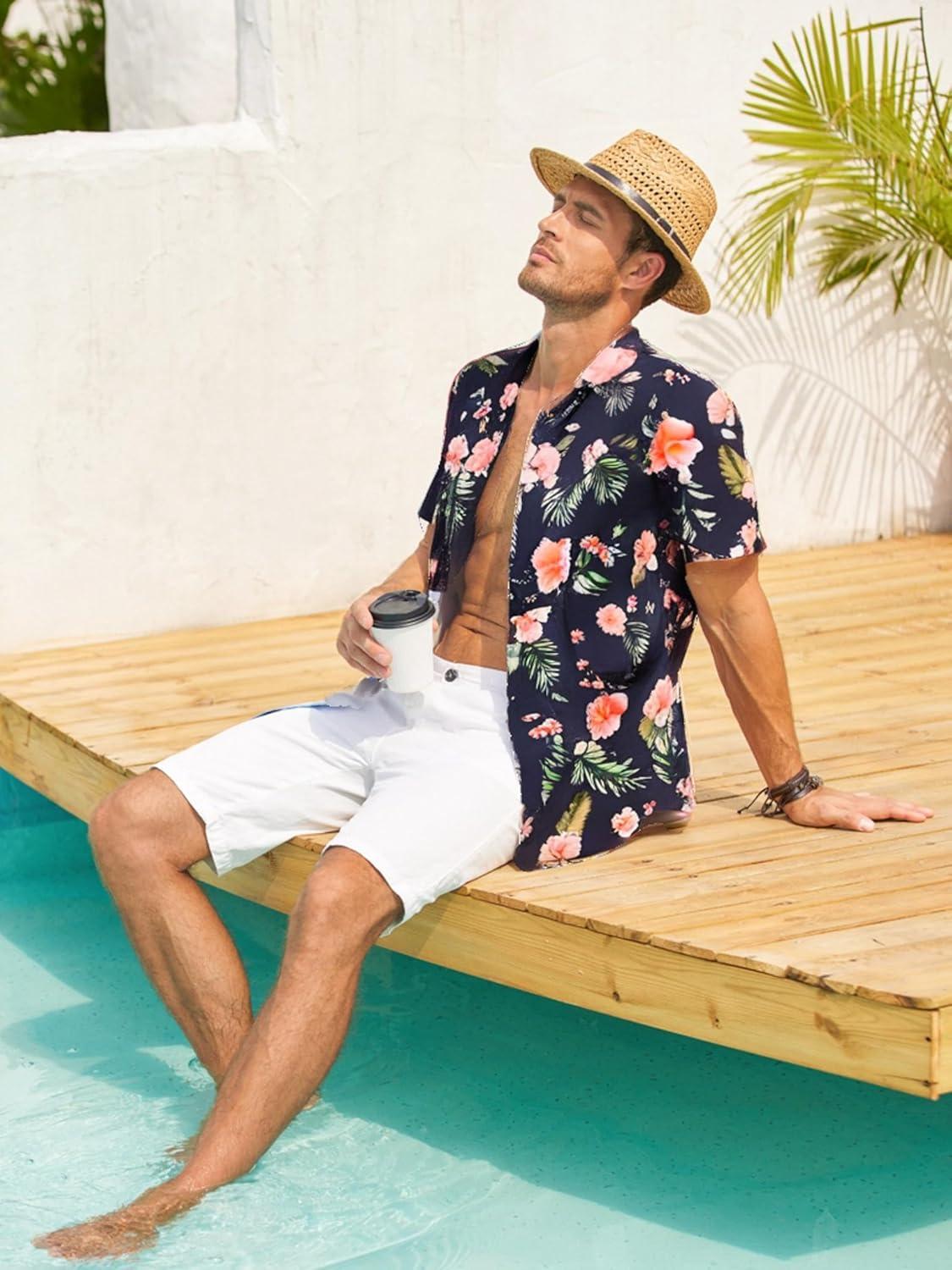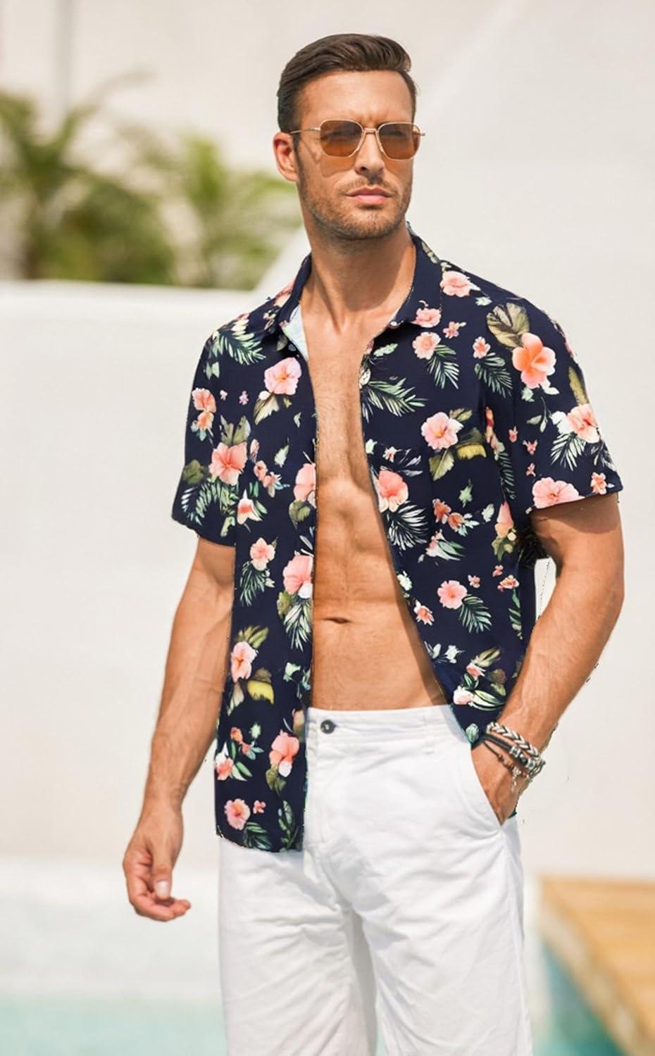 Get up to 60% off on COOFANDY Men’s Hawaiian Shirt Short Sleeve Casual Button Down Tropical Summer Beach Aloha Shirts(Navy-pink Flowers) styles during our winter sale event.