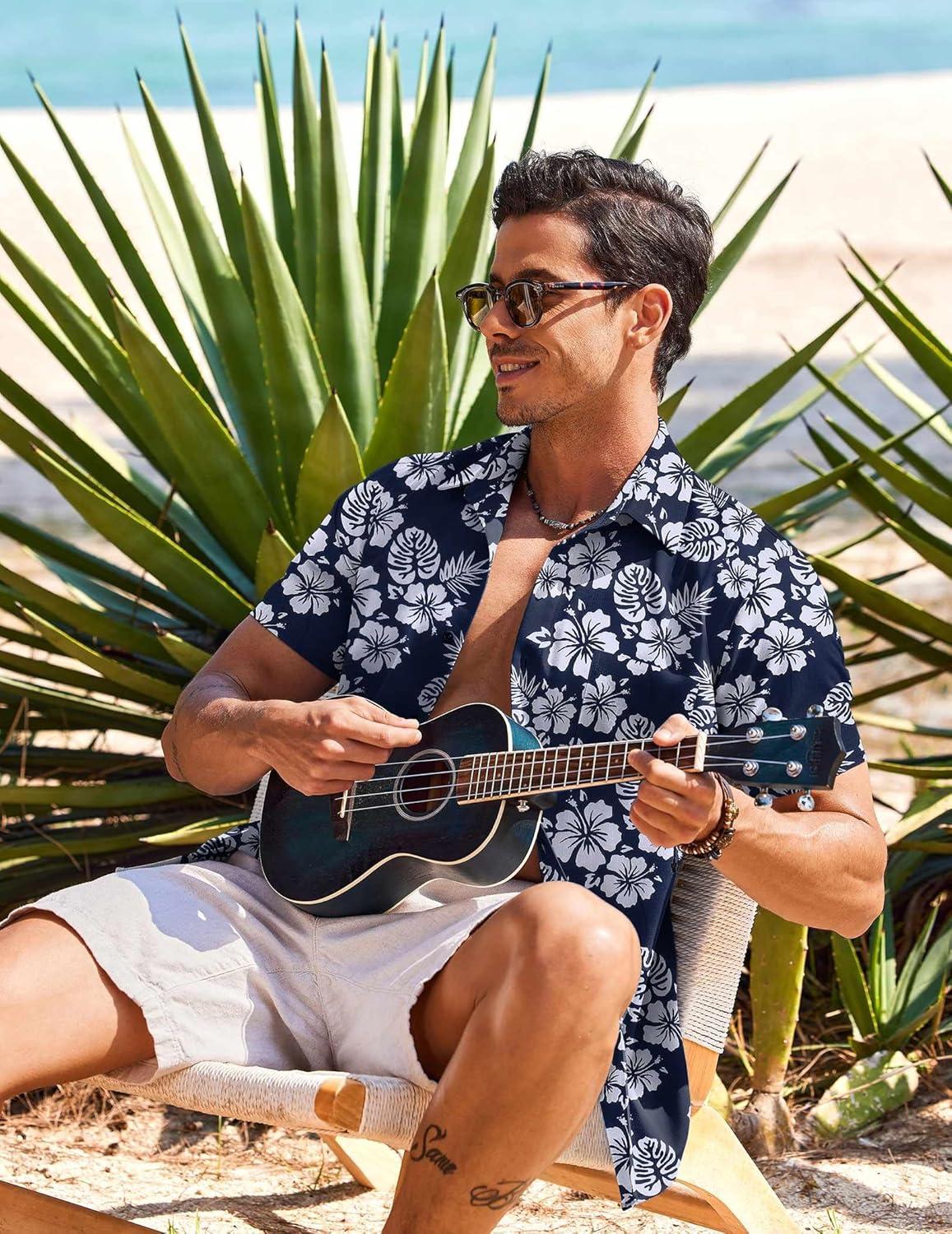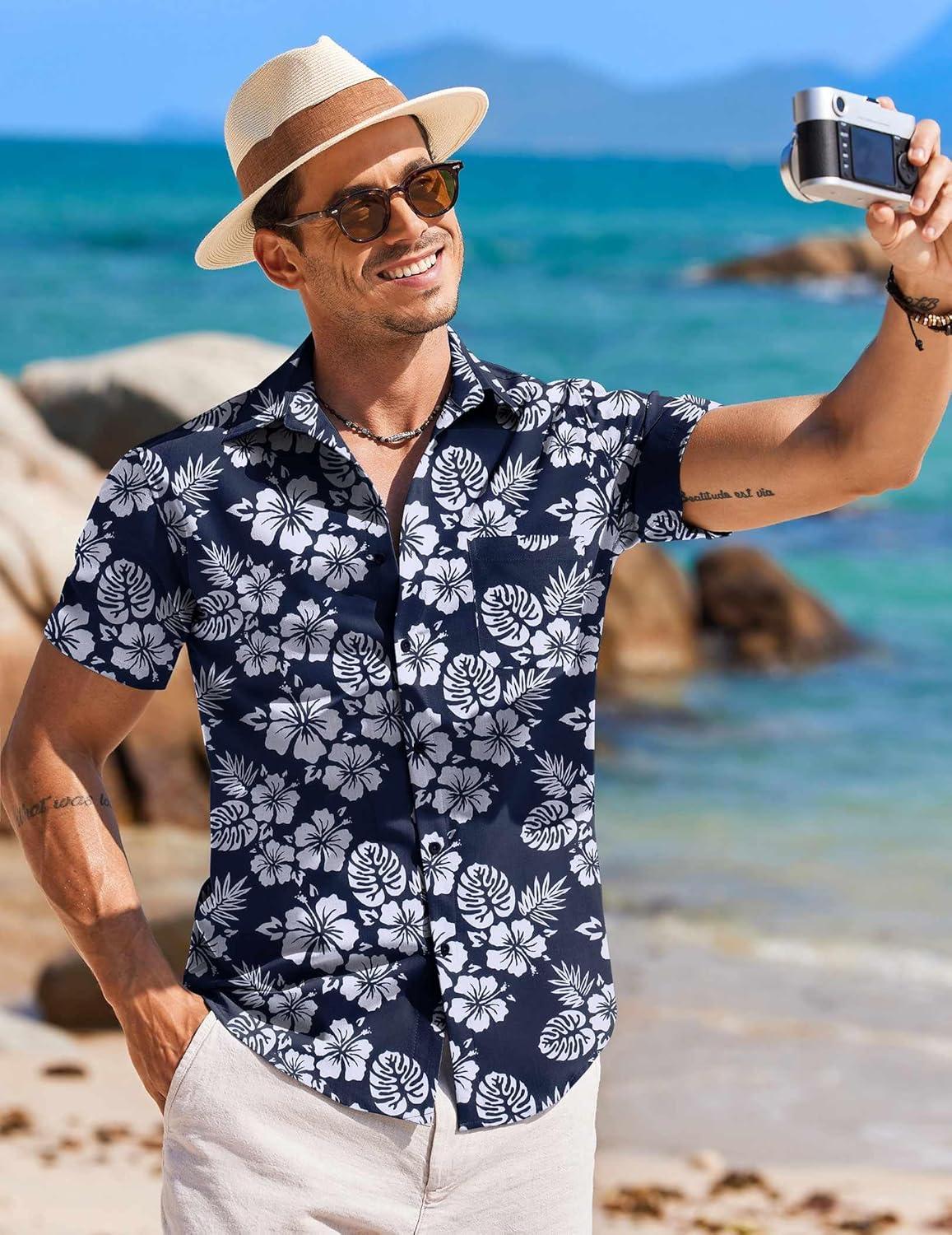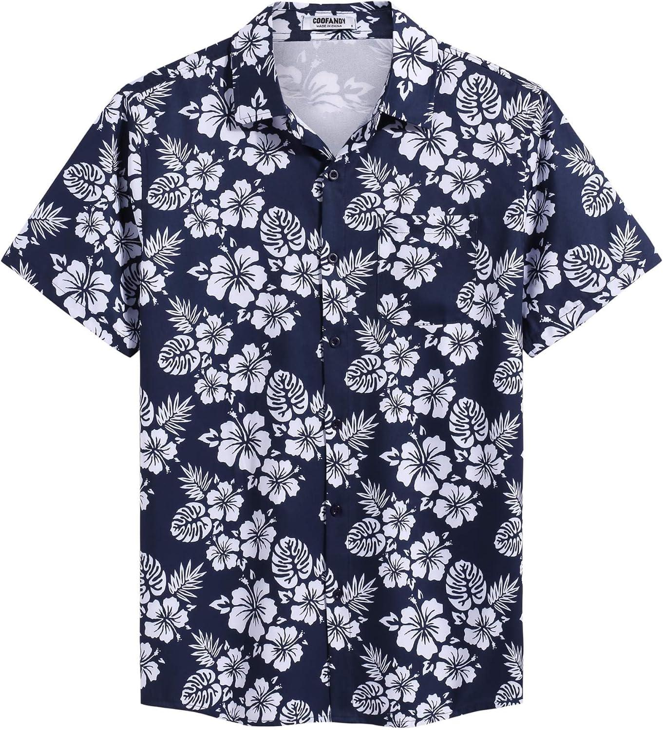 COOFANDY Men’s Hawaiian Shirt Short Sleeve Casual Button Down Tropical Summer Beach Aloha Shirts(Navy-white Flowers)