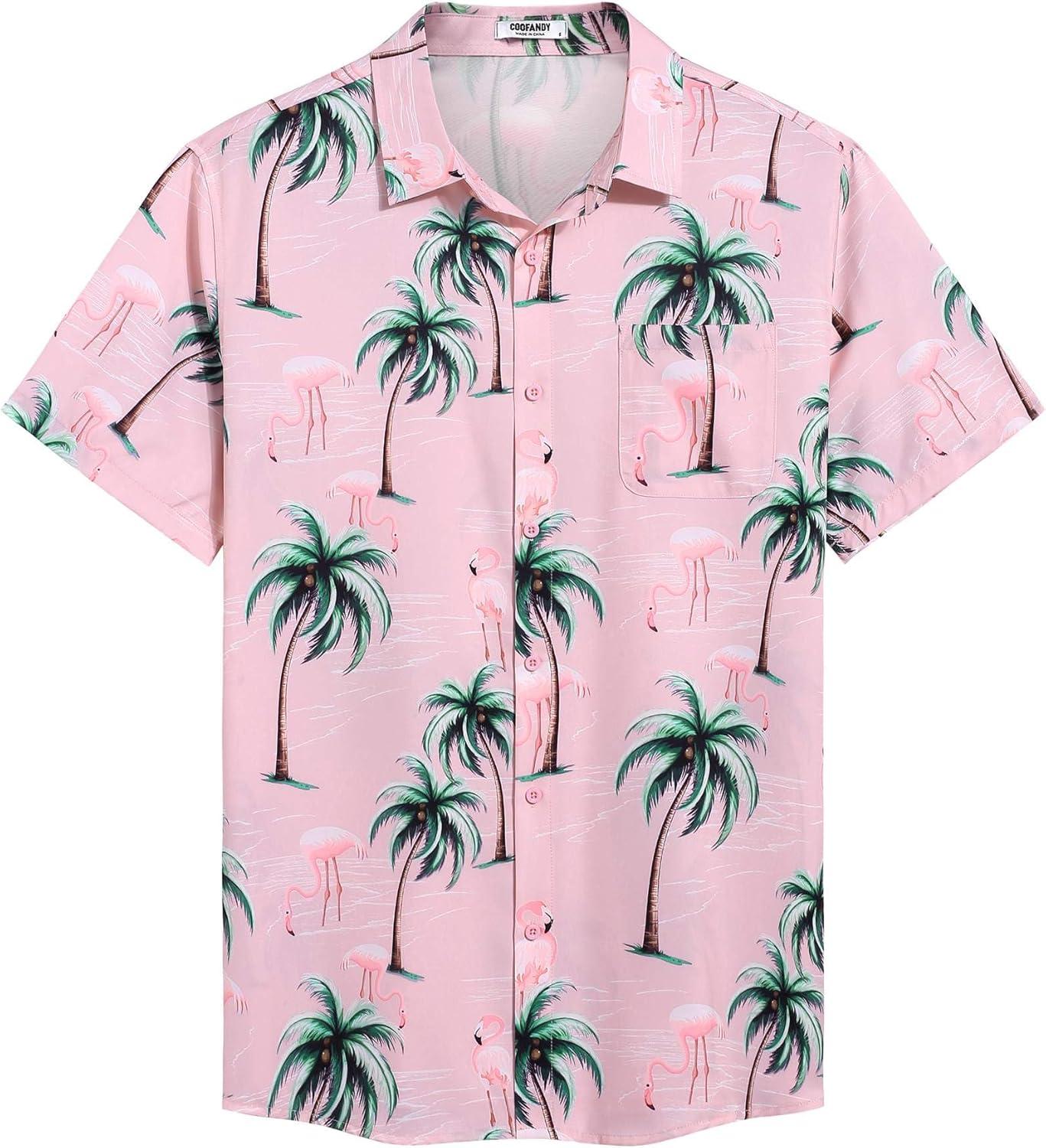COOFANDY Men's Hawaiian Shirt Short Sleeve Casual Button Down Tropical Summer Beach Aloha Shirts(Pink-coconut Trees)