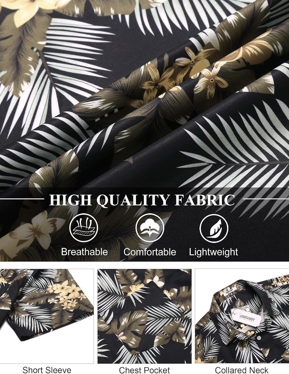 COOFANDY Men’s Hawaiian Shirt Short Sleeve Floral Button Down Shirts Tropical Holiday Beach Shirts(Black & Khaki – Leaves)