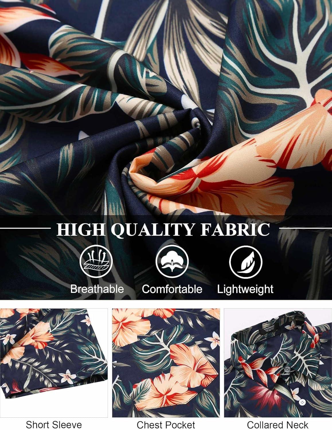 COOFANDY Men’s Hawaiian Shirt Short Sleeve Floral Button Down Shirts Tropical Holiday Beach Shirts(Navy – Flower 2)