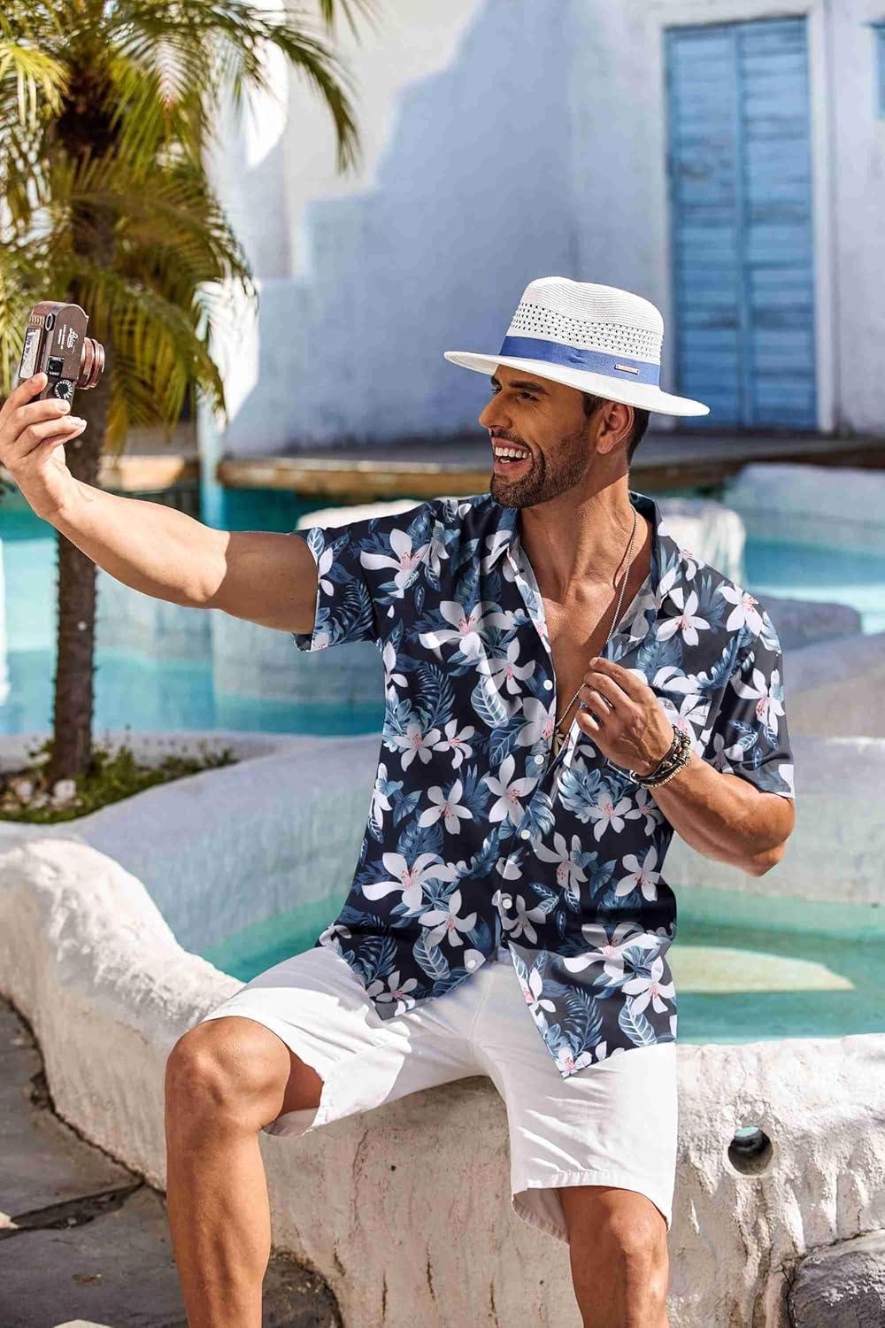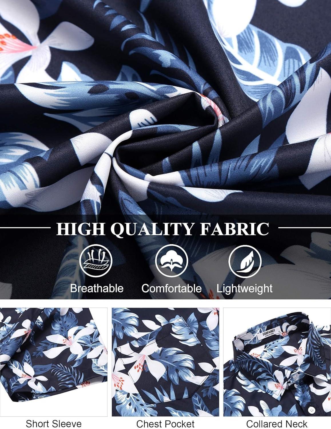 COOFANDY Men's Hawaiian Shirt Short Sleeve Floral Button Down Shirts Tropical Holiday Beach Shirts(Navy & White - Flower)
