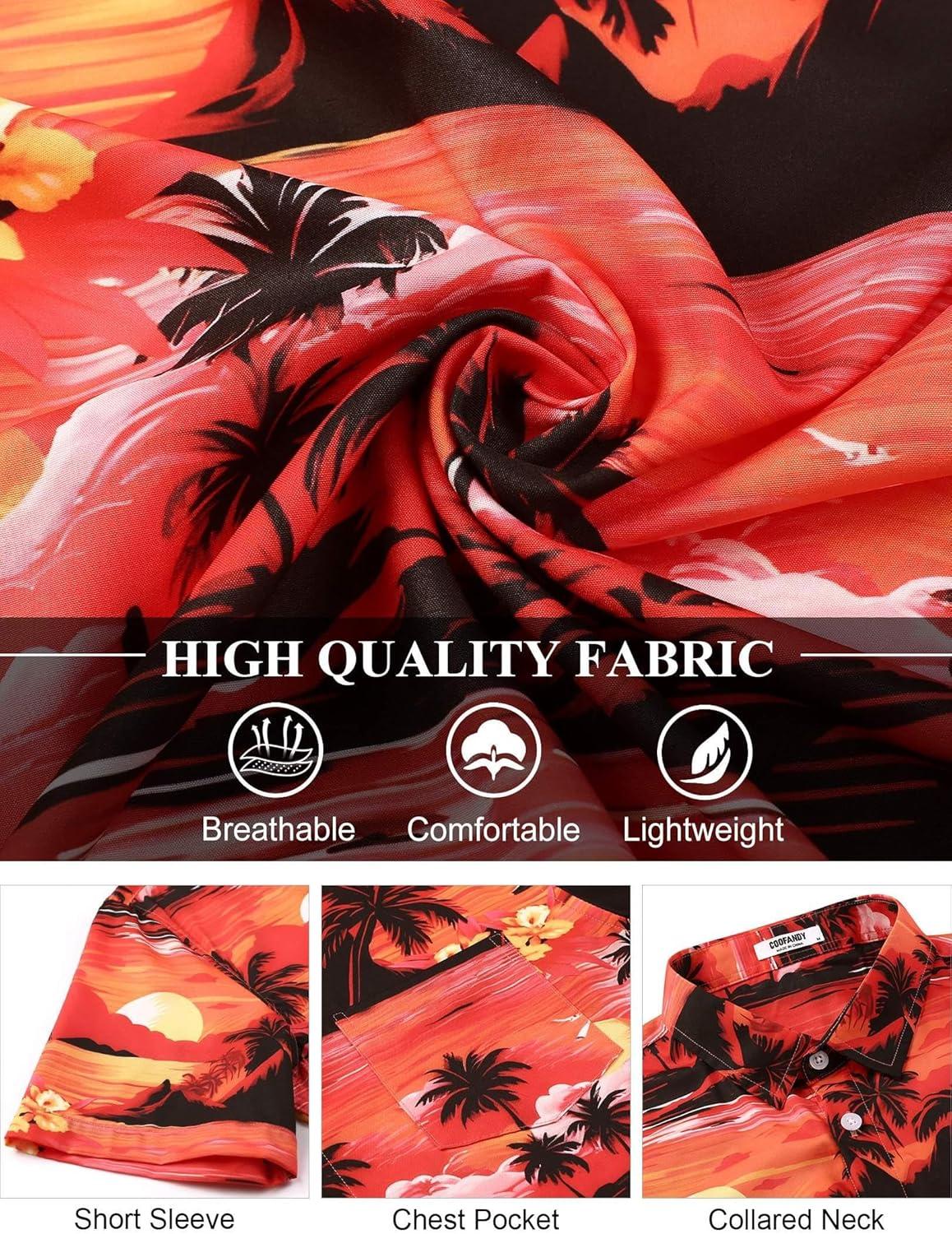COOFANDY Men’s Hawaiian Shirt Short Sleeve Floral Button Down Shirts Tropical Holiday Beach Shirts(Red – Sunset & Palm Tree)